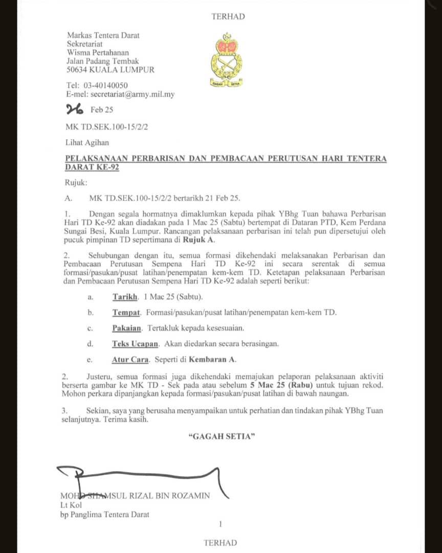 Alamat : Pegawai Risik Bn 2 PGA, Kulim, Kedah.