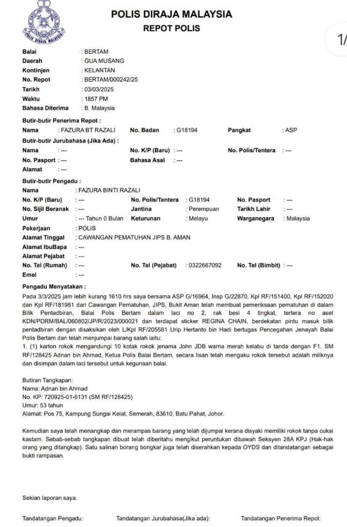 *Makluman Kejayaan Tangkapan & Rampasan Op Taring Alpha 1 oleh Cawangan Risik Batalion 2 PGA Kulim atas kesalahan Di bawah Akta Kastam 1967*