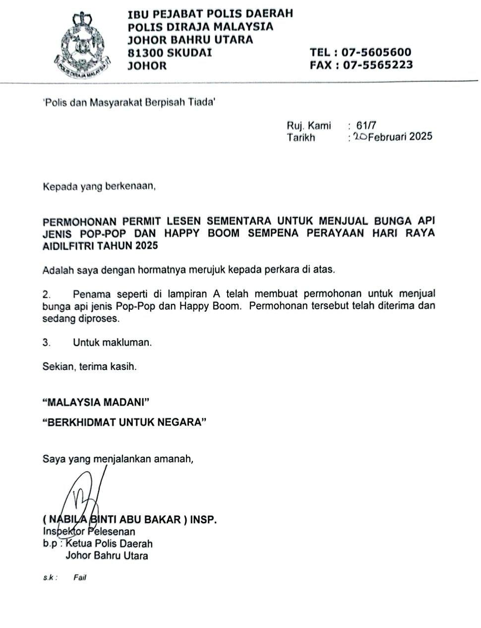 Alamat : No. 45, Taman Sri Cahaya, Buloh Kasap, 85010 Segamat, Johor.