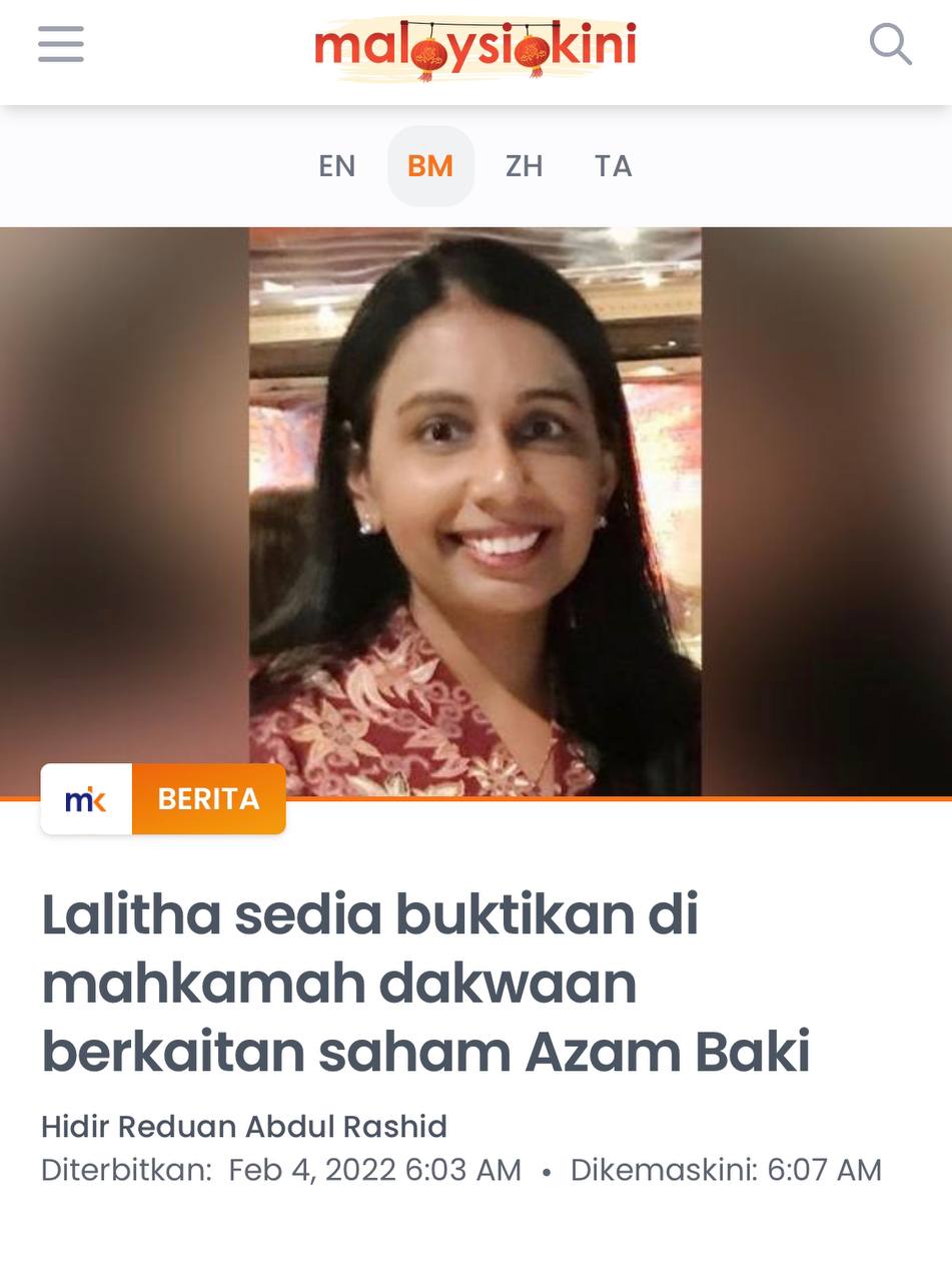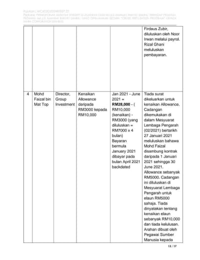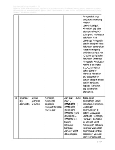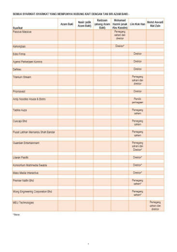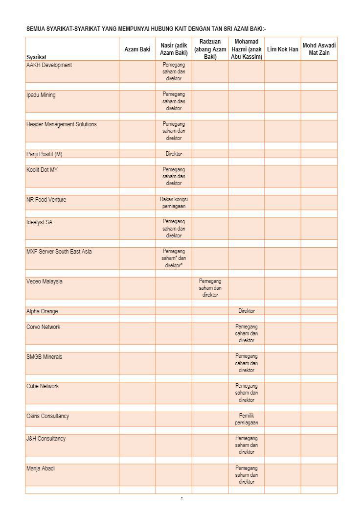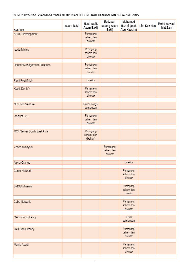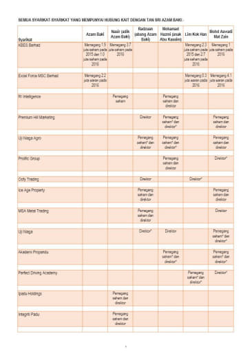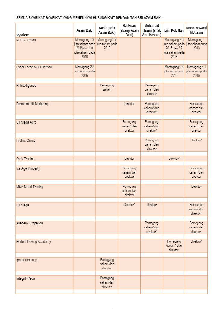 1. Mamita Global Sdn. Bhd. - 25% @ RM 1.25 juta (Syarikat yang baru didaftarkan tahun lalu dengan paidup RM1 juta yang dimiliki oleh seorang sahaja individu bernama Ruzita binti Mohd Nor)