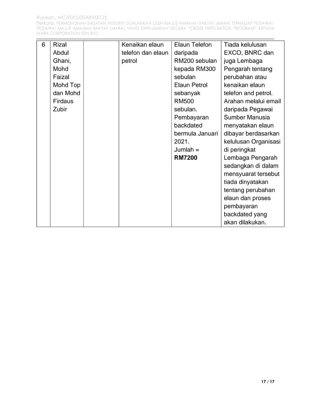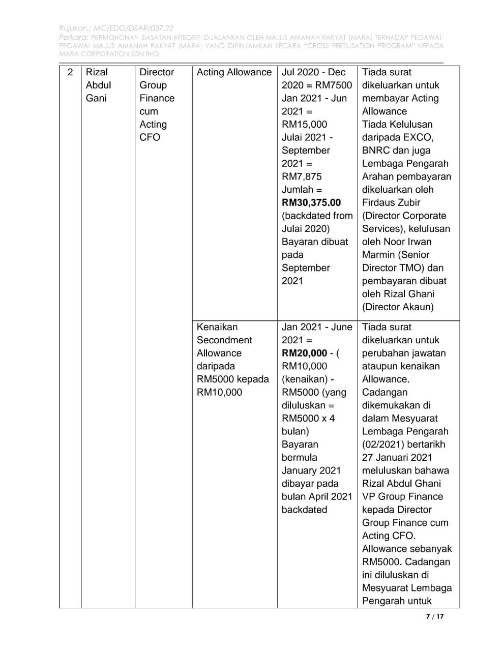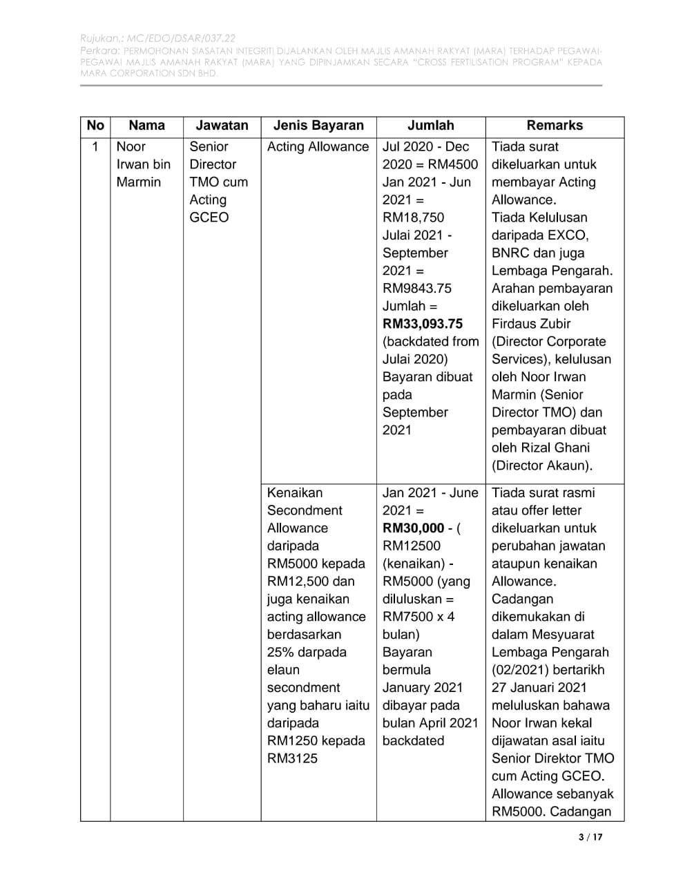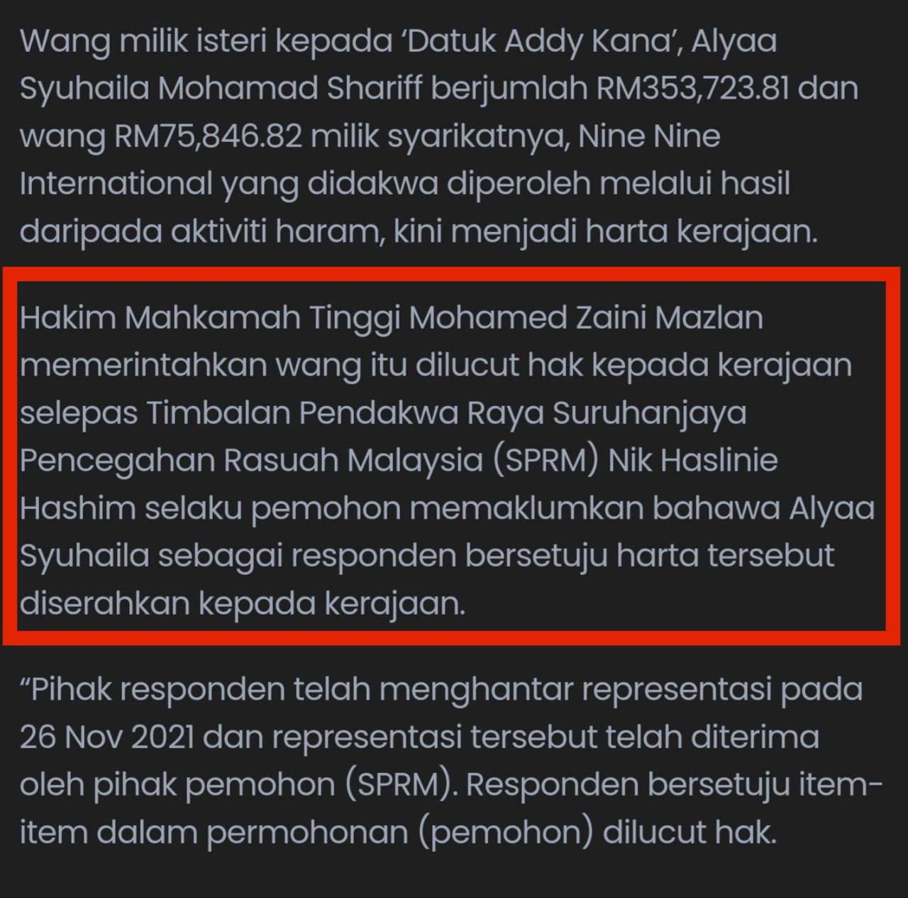 1. Mamita Global Sdn. Bhd. - 25% @ RM 1.25 juta (Syarikat yang baru didaftarkan tahun lalu dengan paidup RM1 juta yang dimiliki oleh seorang sahaja individu bernama Ruzita binti Mohd Nor)