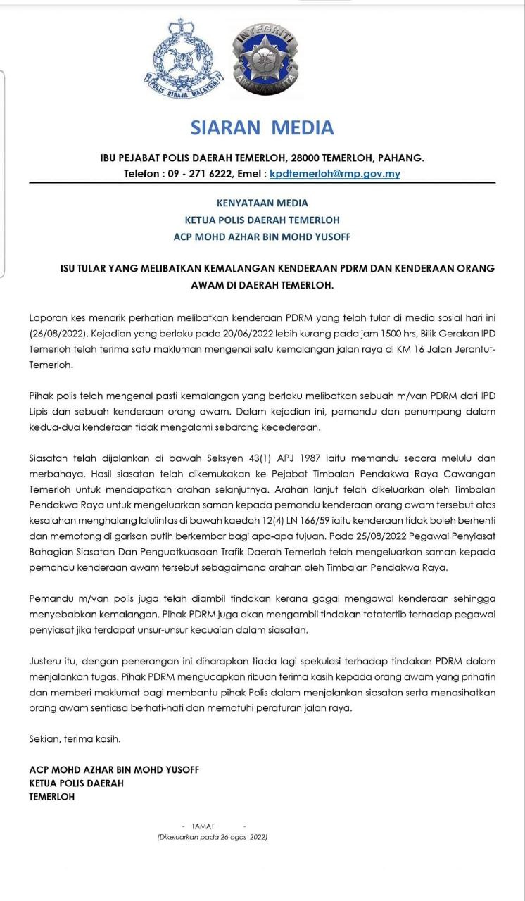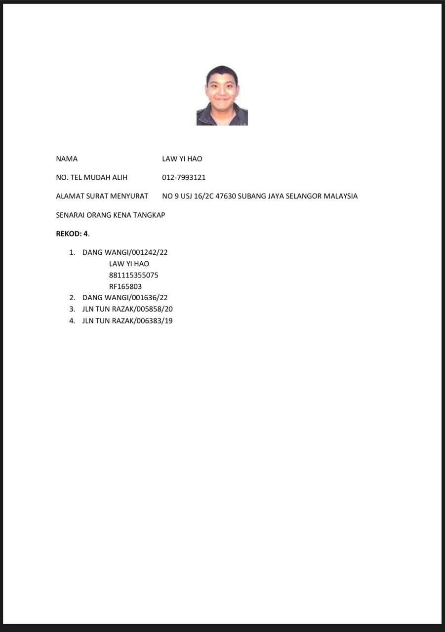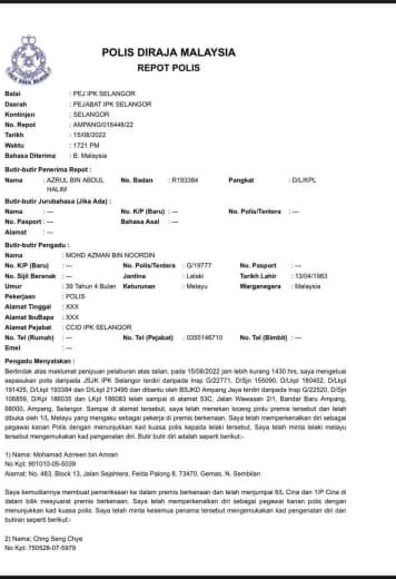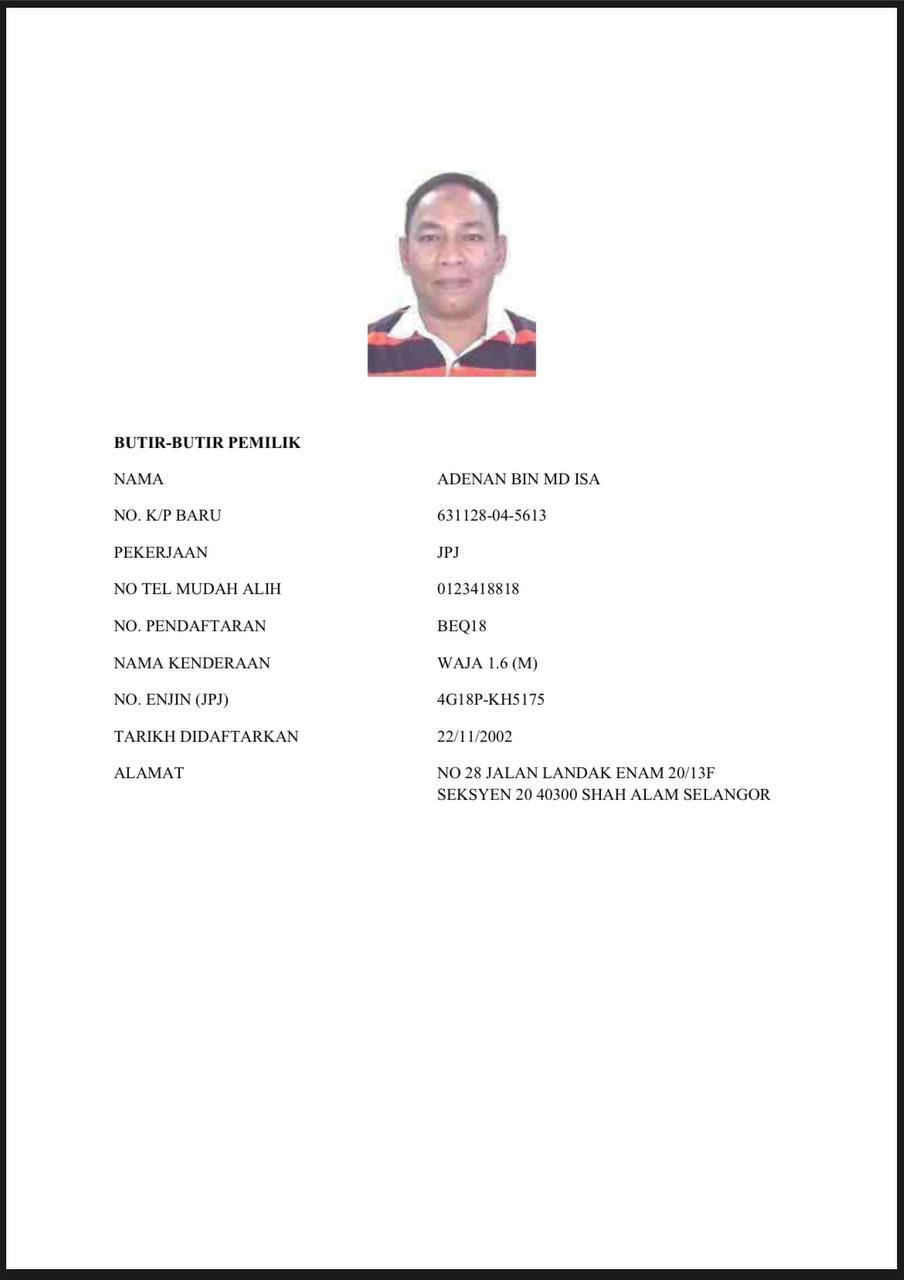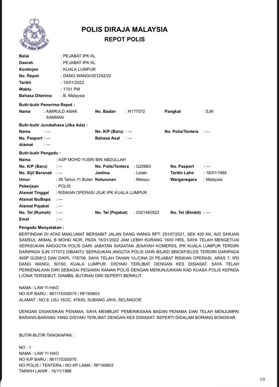 No.Kad Kuasa Polis: Rf/158105 (Akuan Lisan)