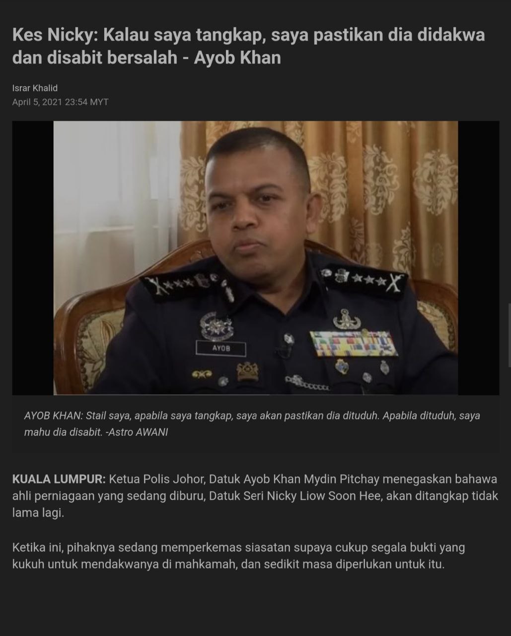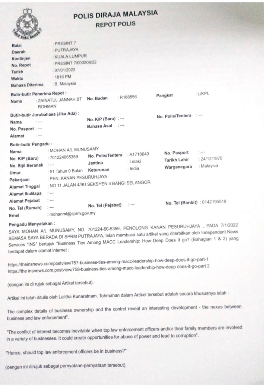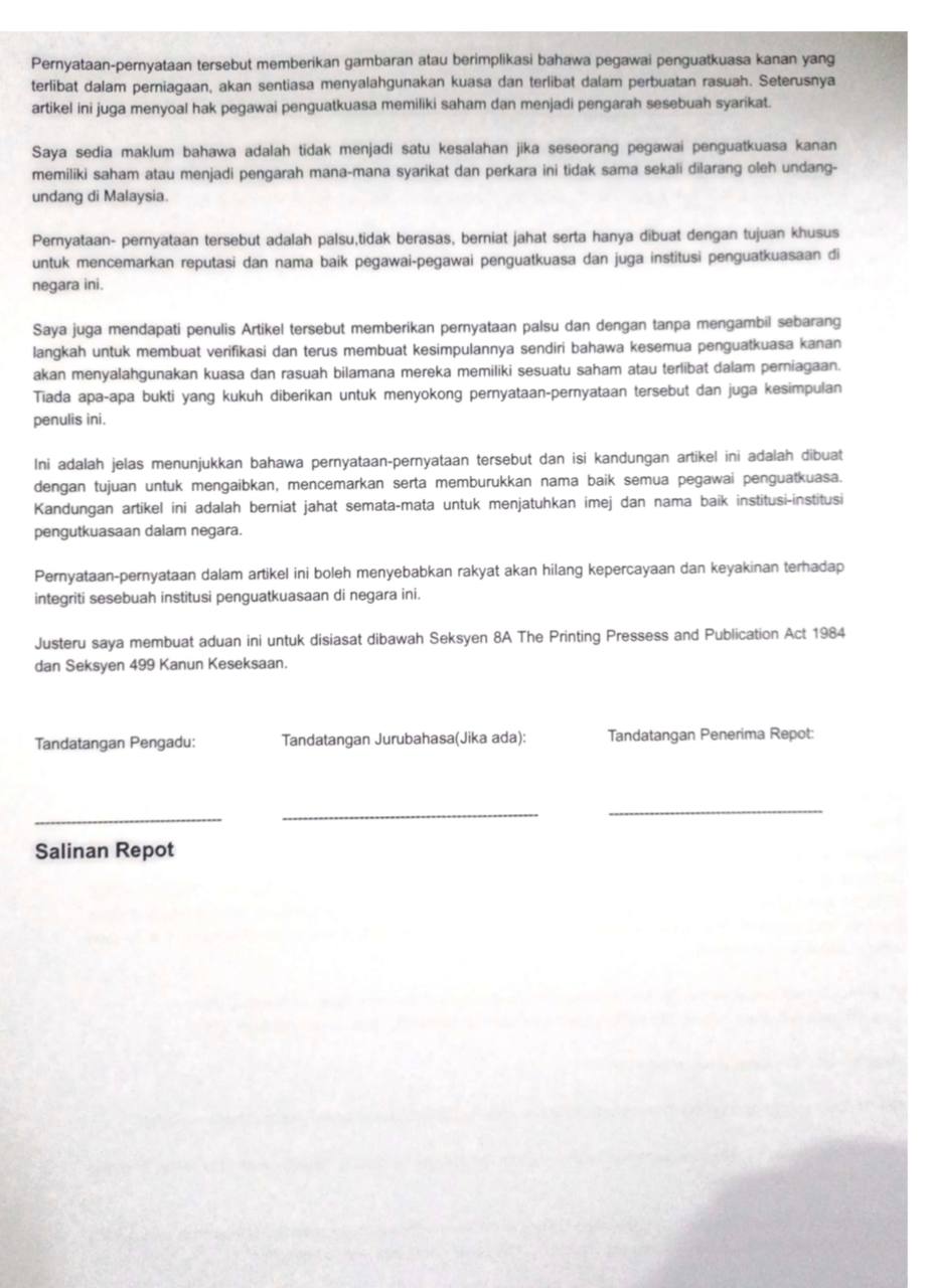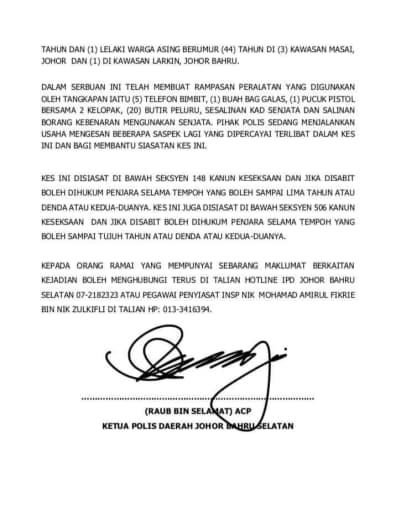 No.Kad Kuasa Polis: Rf/158105 (Akuan Lisan)