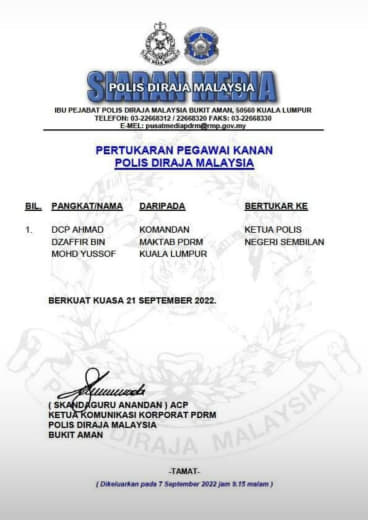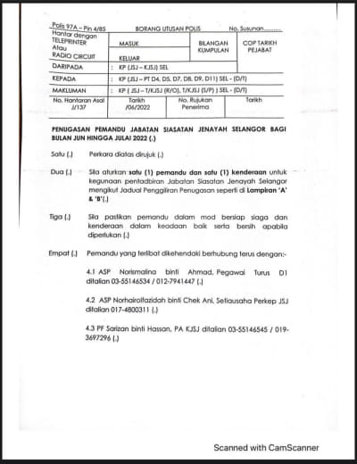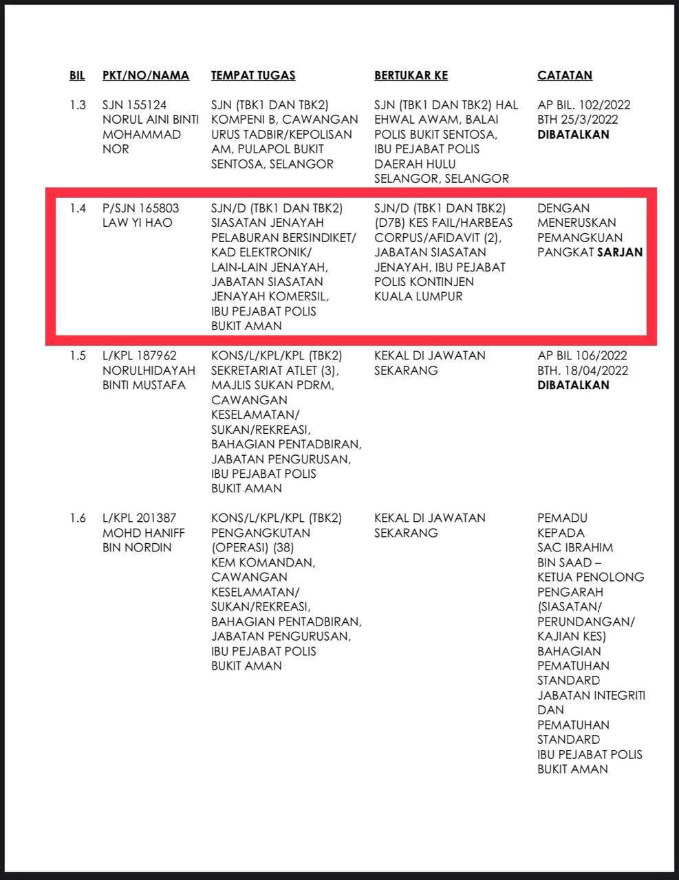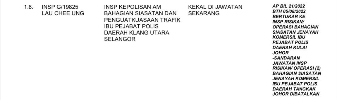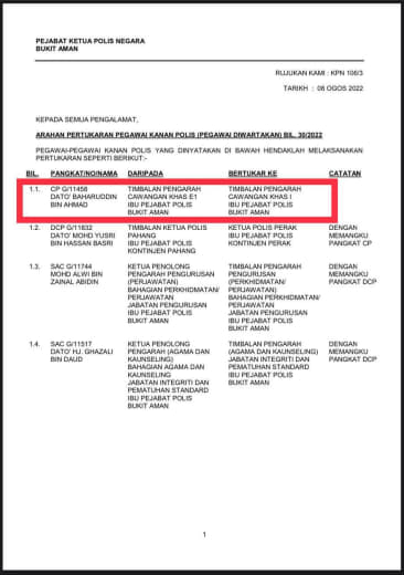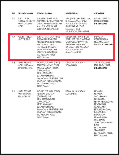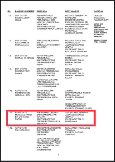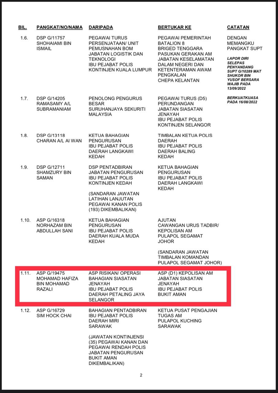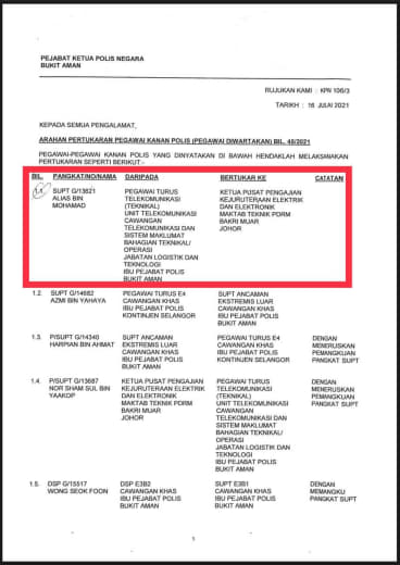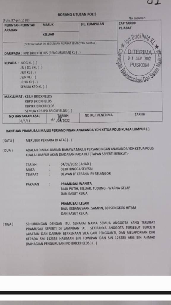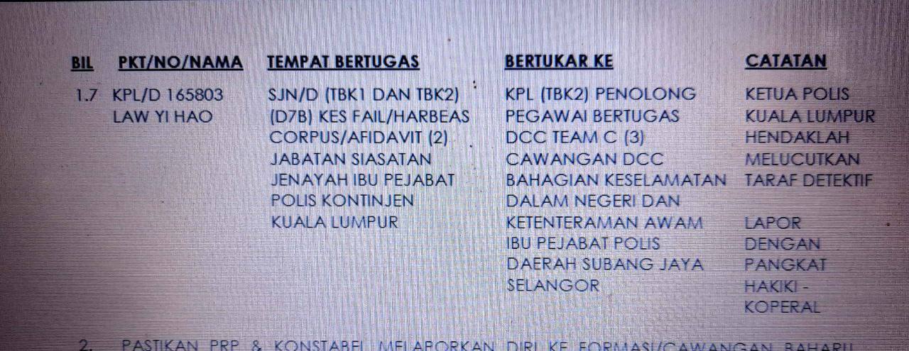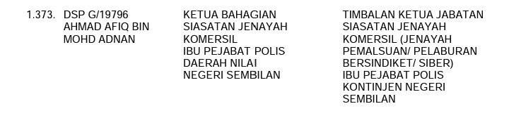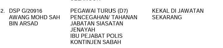 Tempat Bertugas: D6 Jsj Bukit Aman (Akuan Lisan)