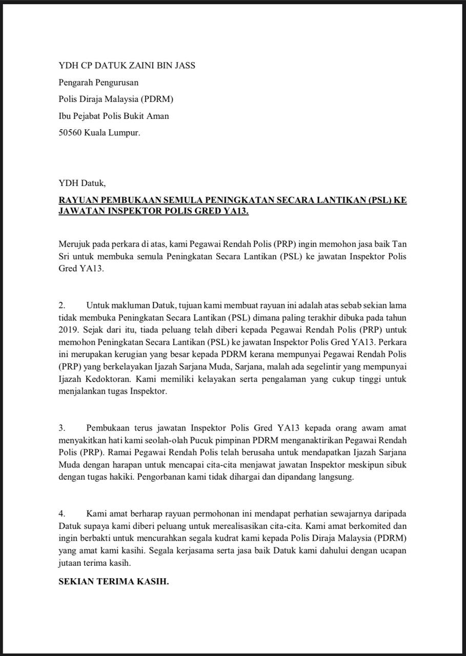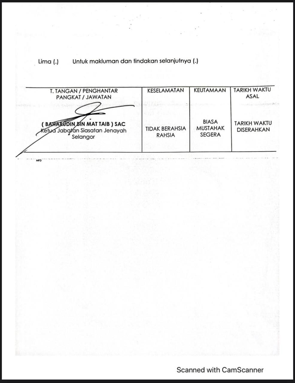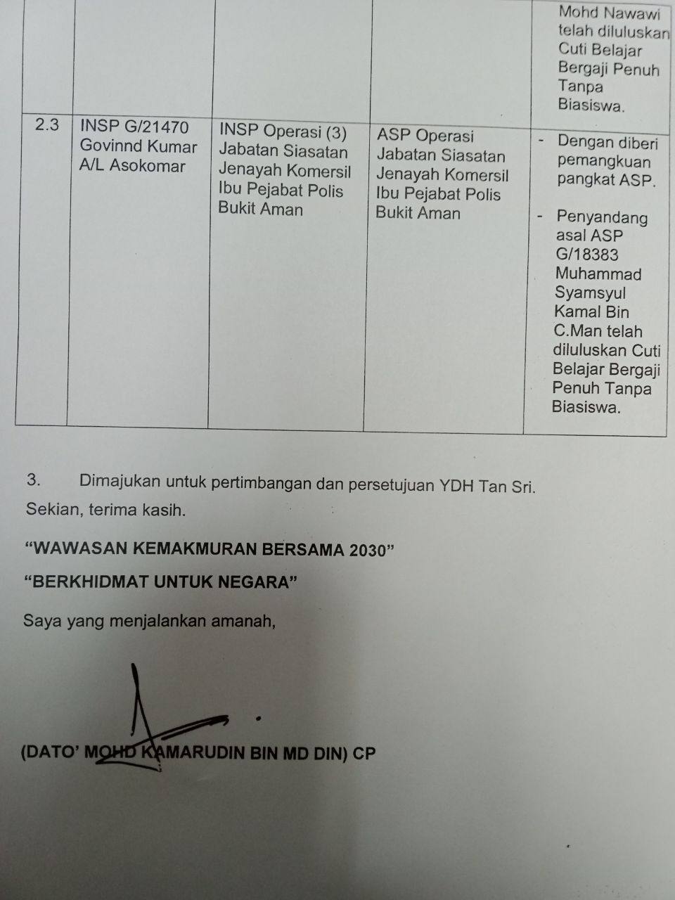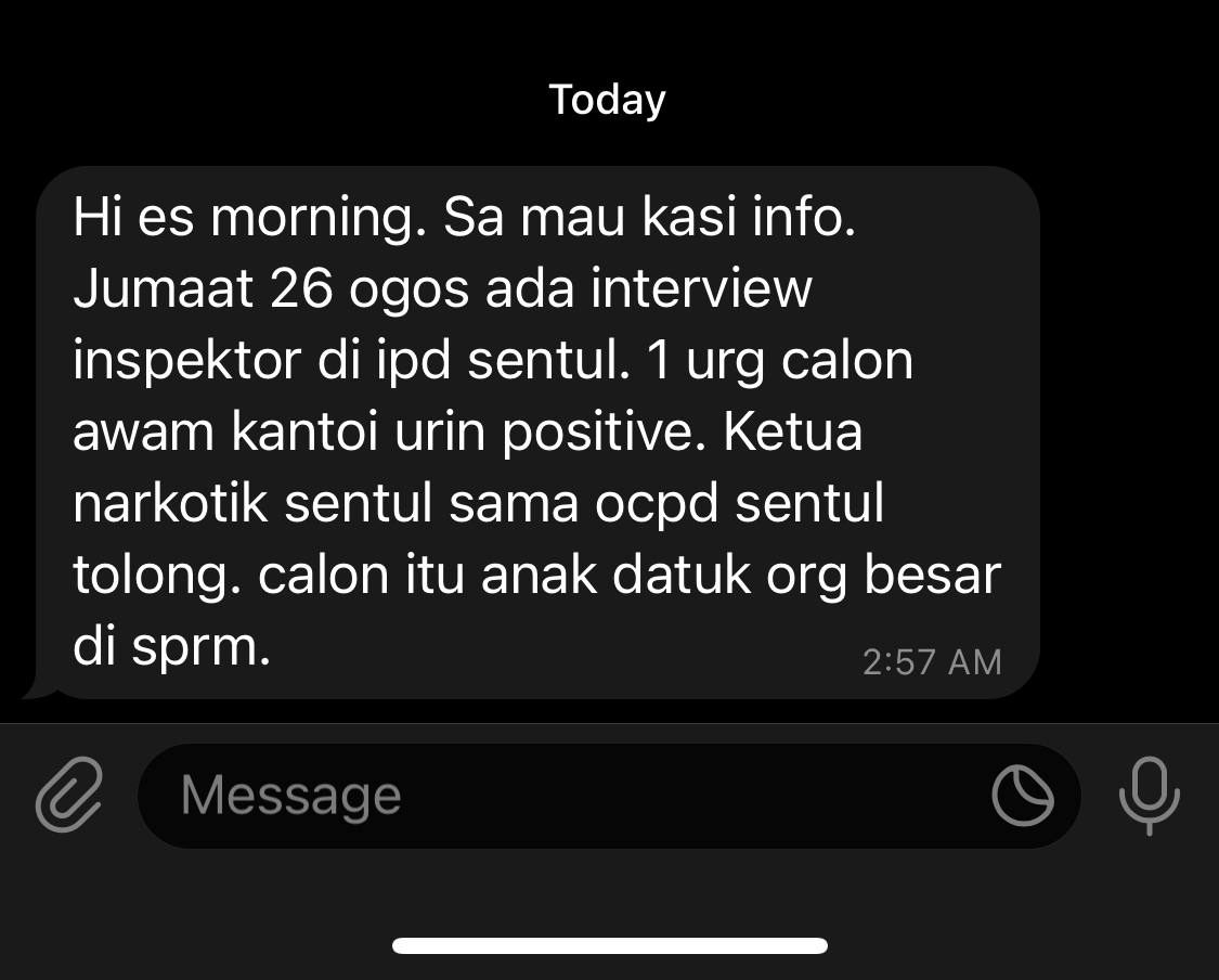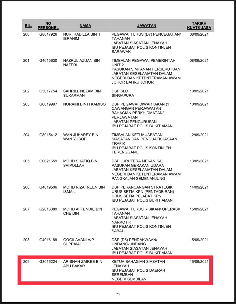 Tempat Bertugas: D6 Jsj Bukit Aman (Akuan Lisan)