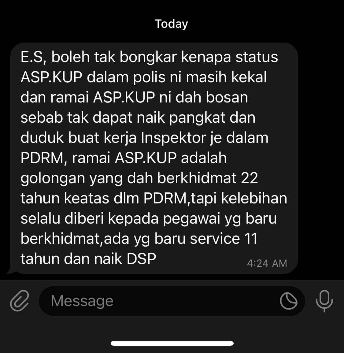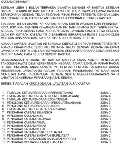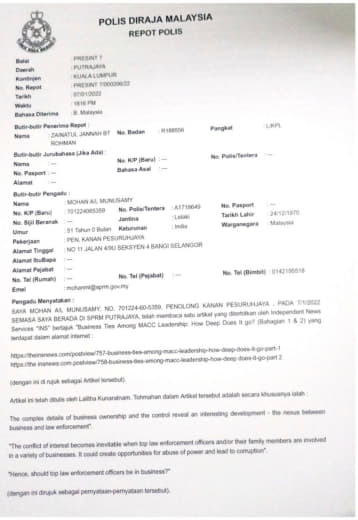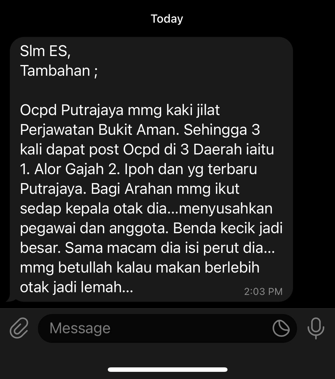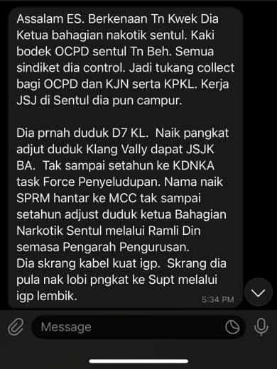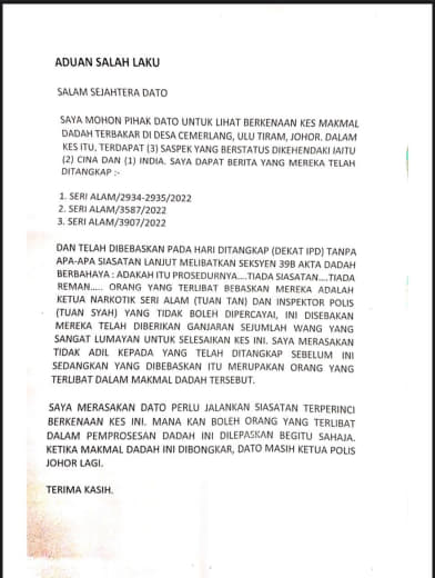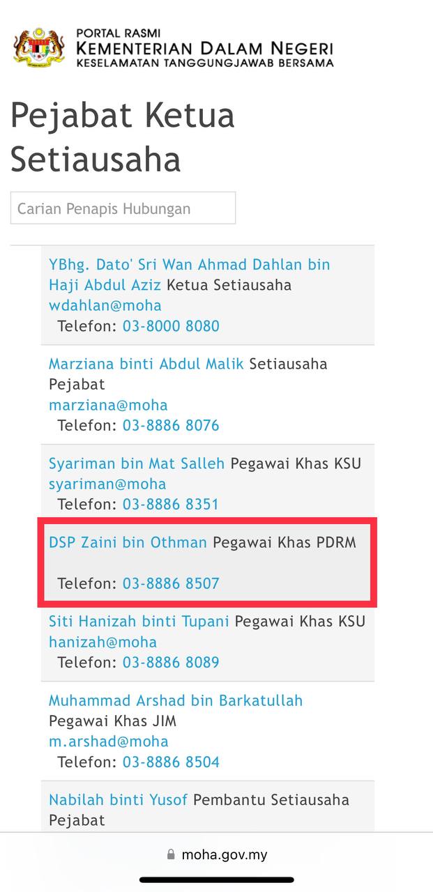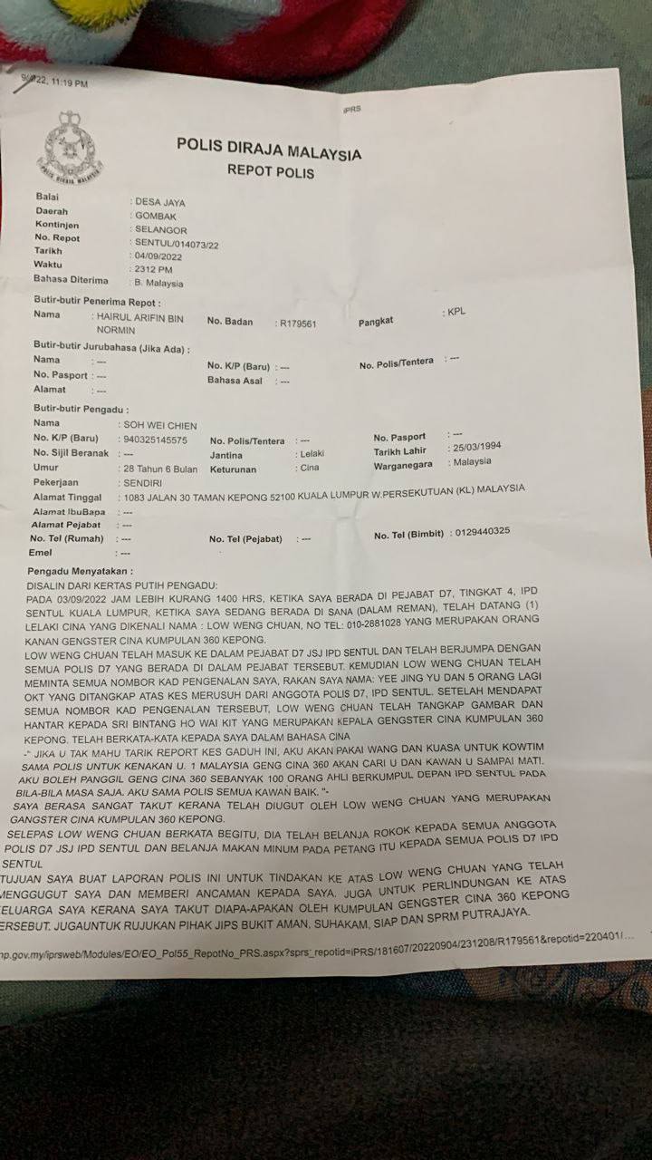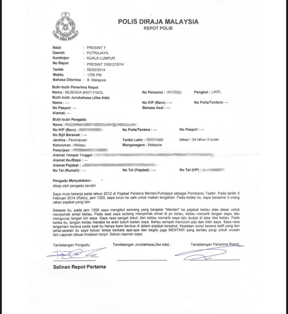 Tempat Bertugas: D6 Jsj Bukit Aman (Akuan Lisan)