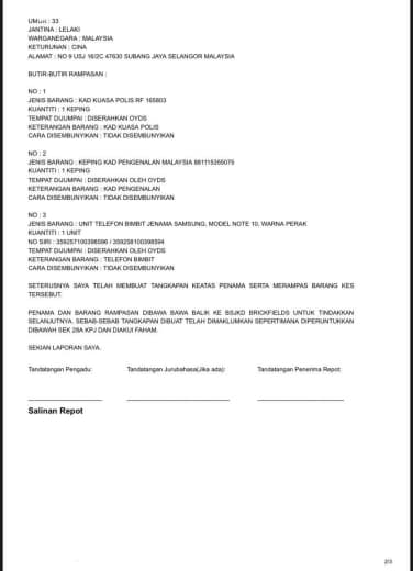 No.Kad Kuasa Polis: Rf/128550