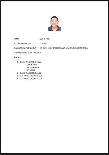 No.Kad Kuasa Polis: Rf/143816