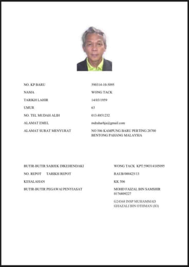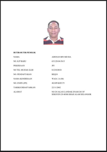 No. Kad Pengenalan: 810124-08-6403