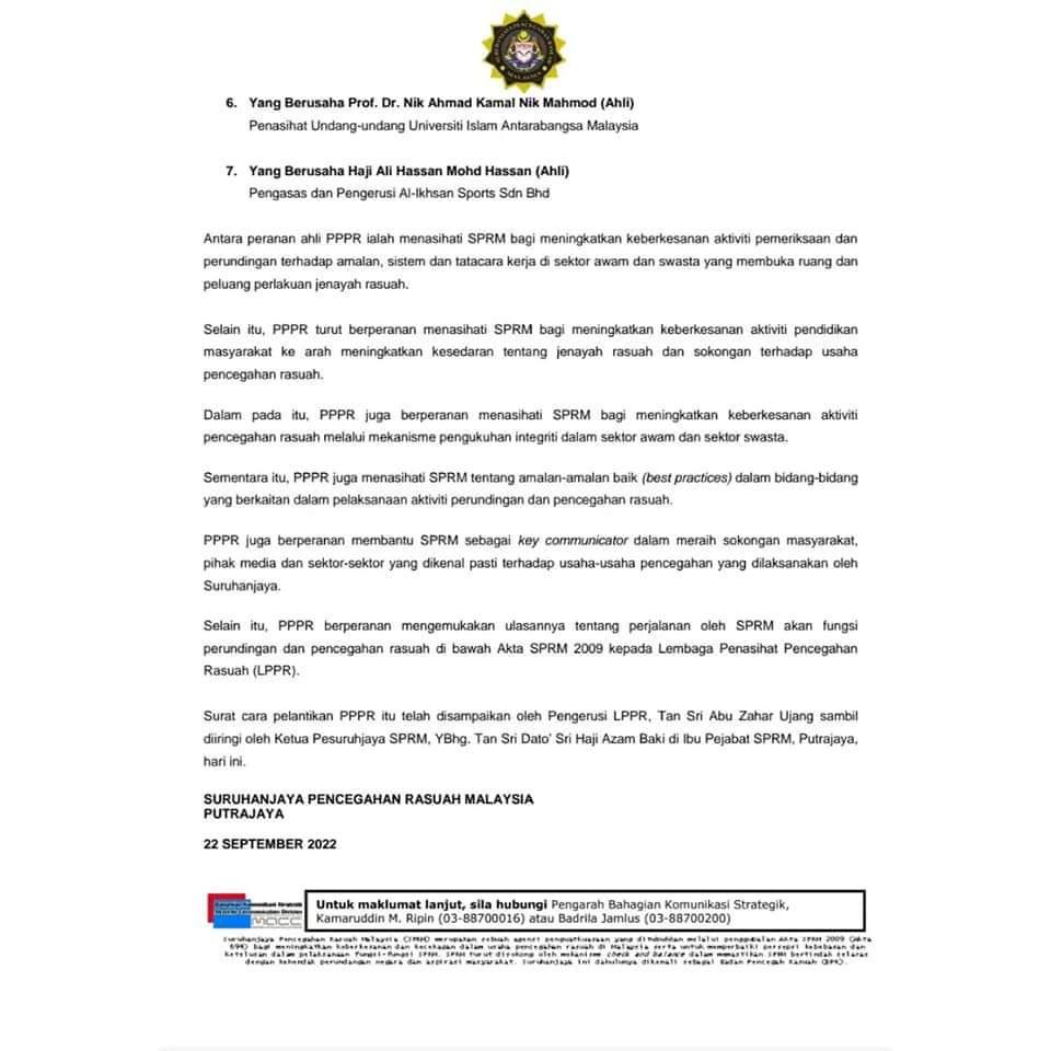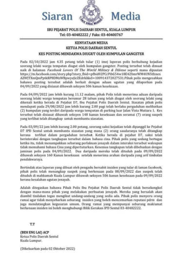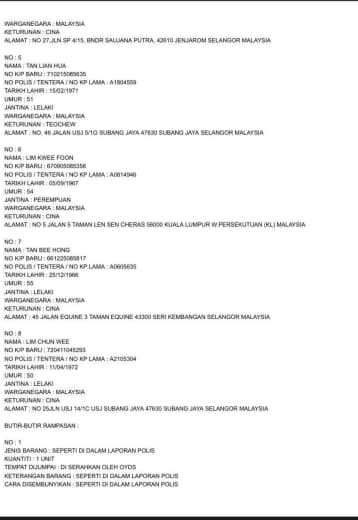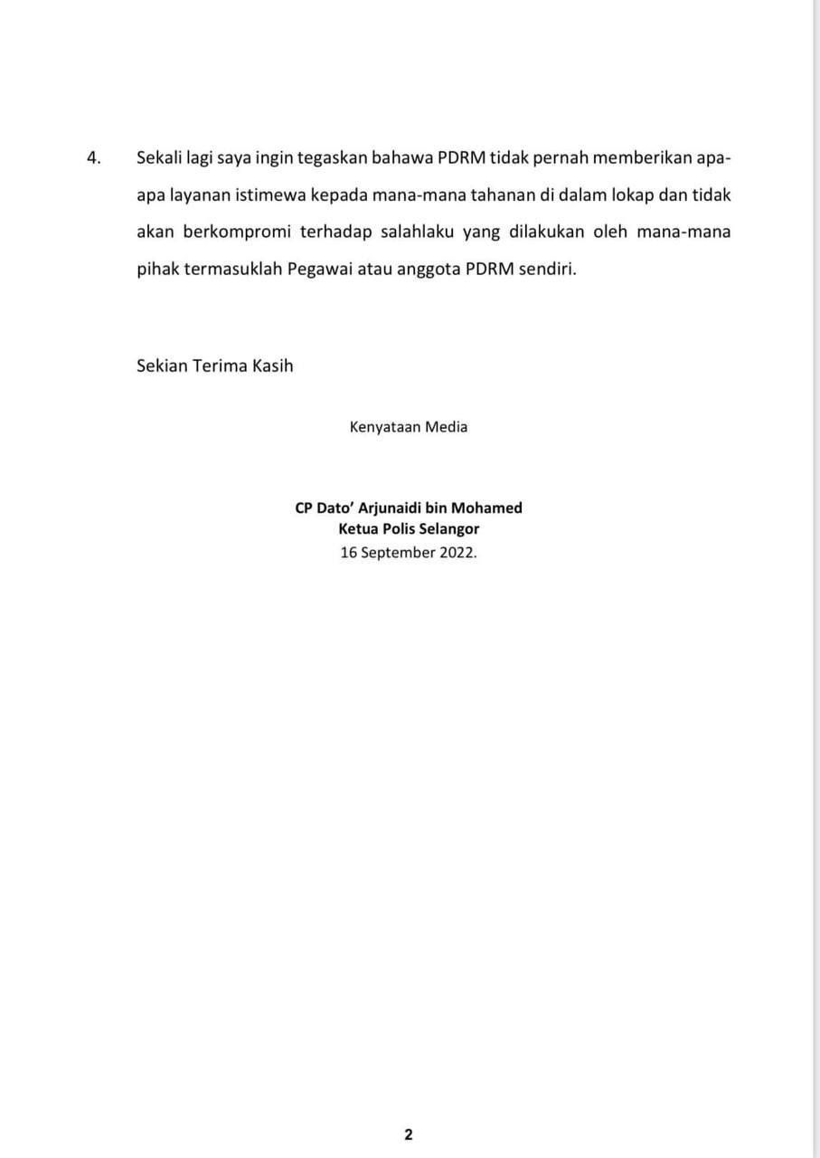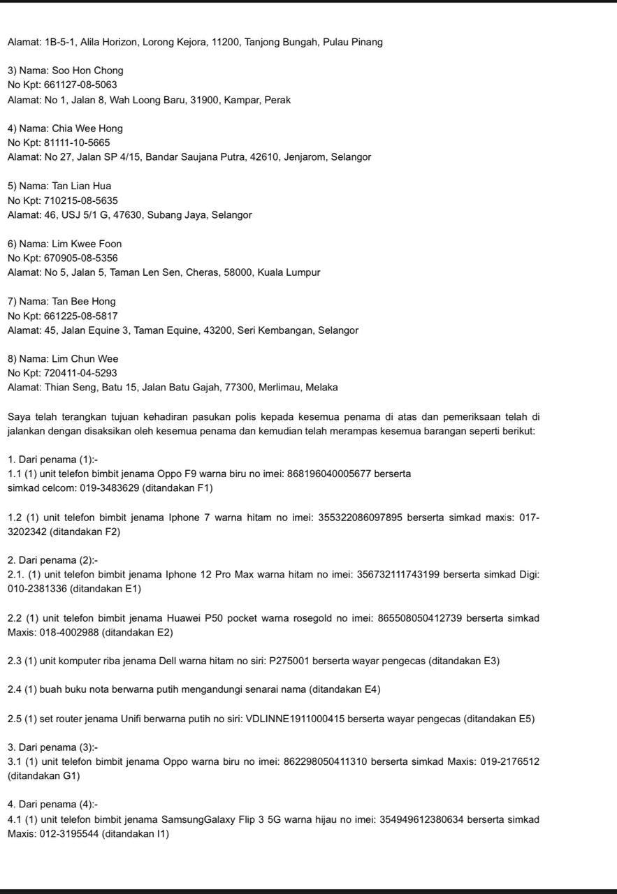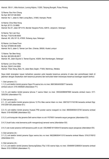 7.5. B1 hingga B5 akan dimasukkan ke dalam lokap IPD Brickfields dan reman 117 KPJ akan dipohon pada 30/10/22.