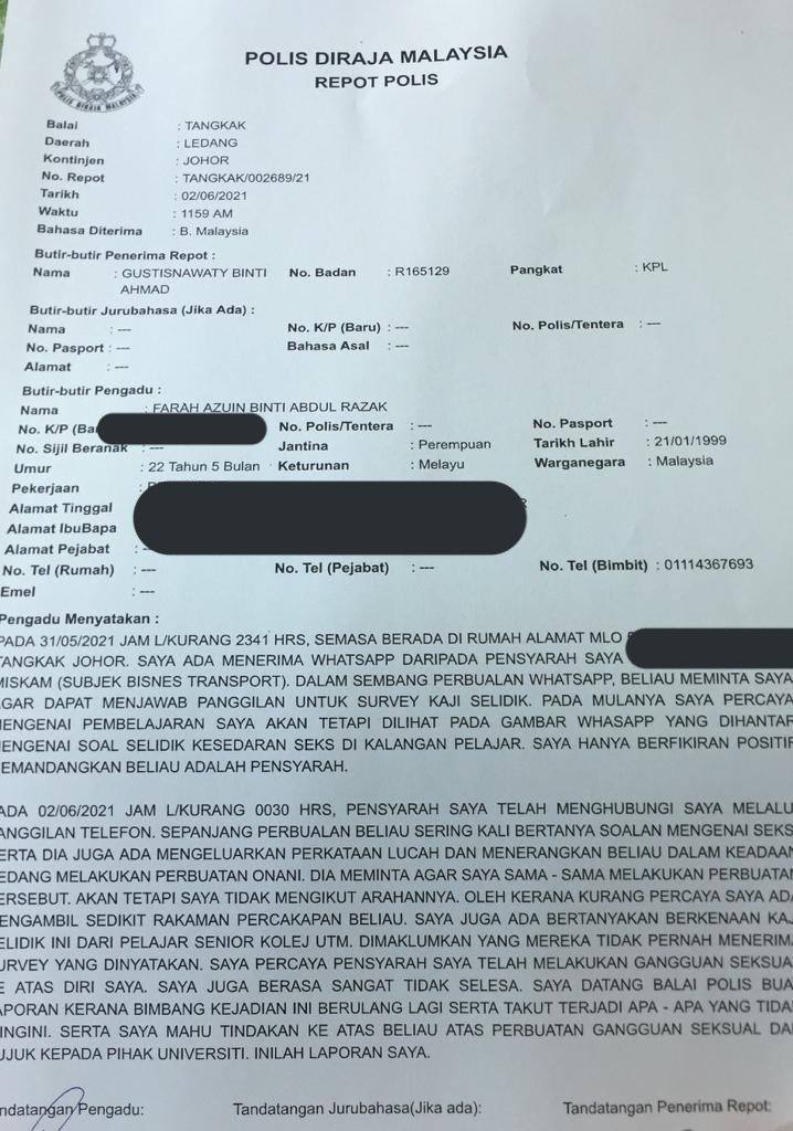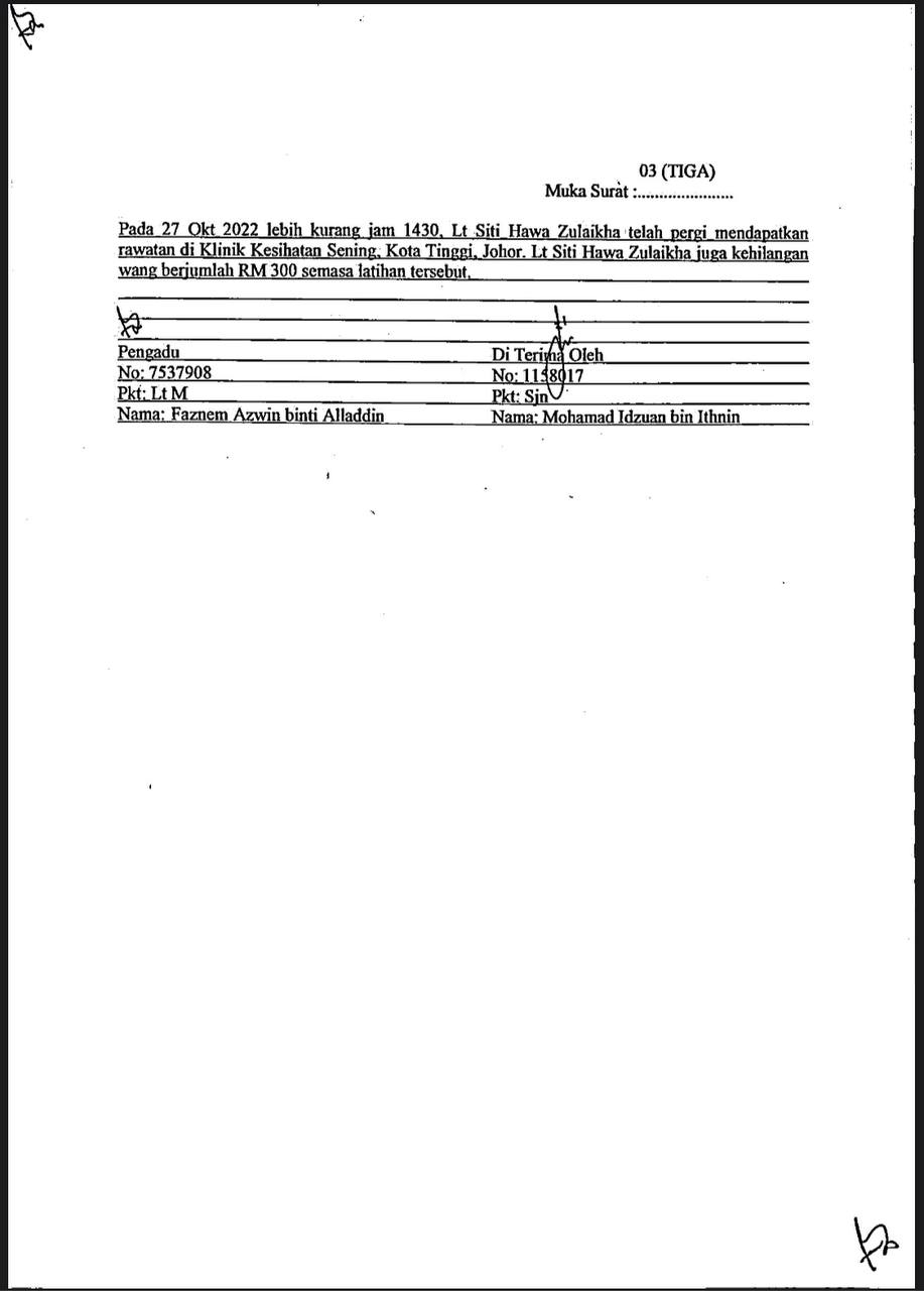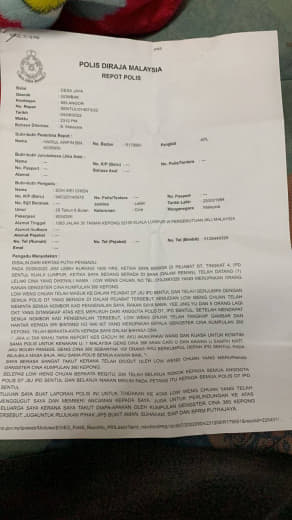 Laporan Polis di buat: Balai Polis Travers