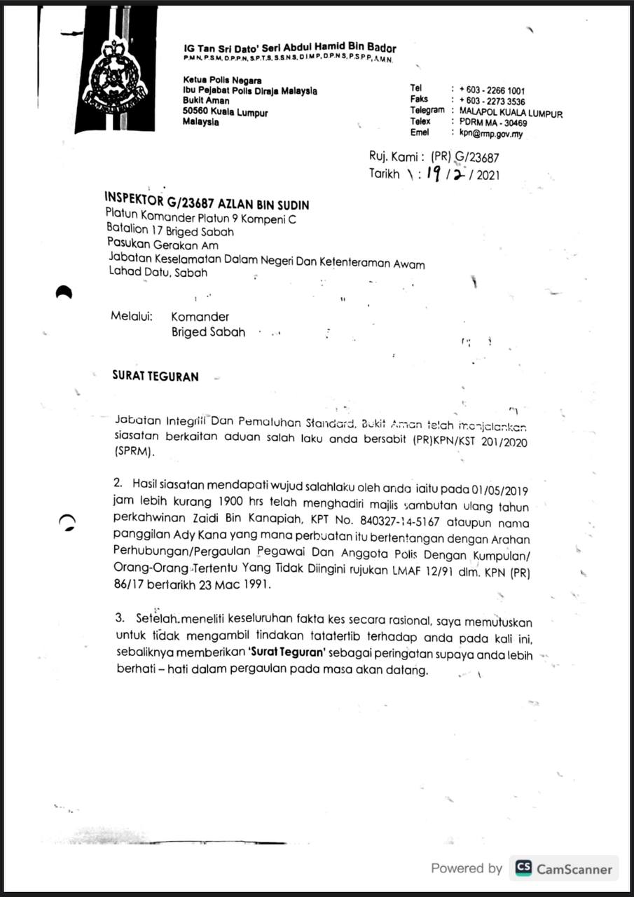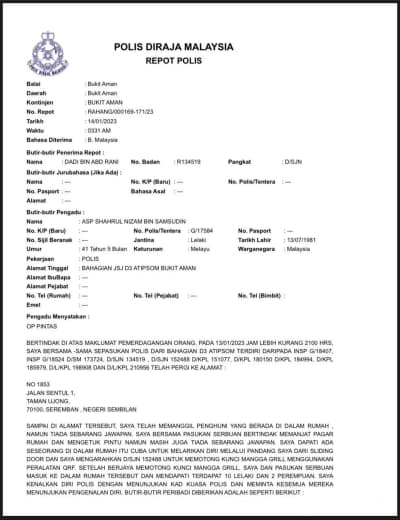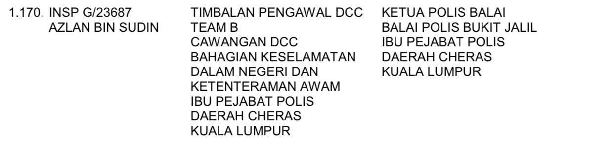 Nama : Kpl/S. Raja Azli Bin Raja Ali