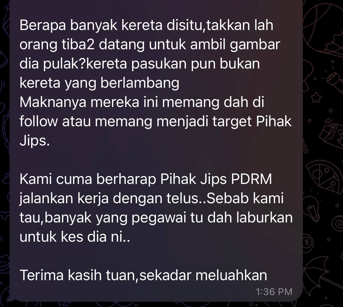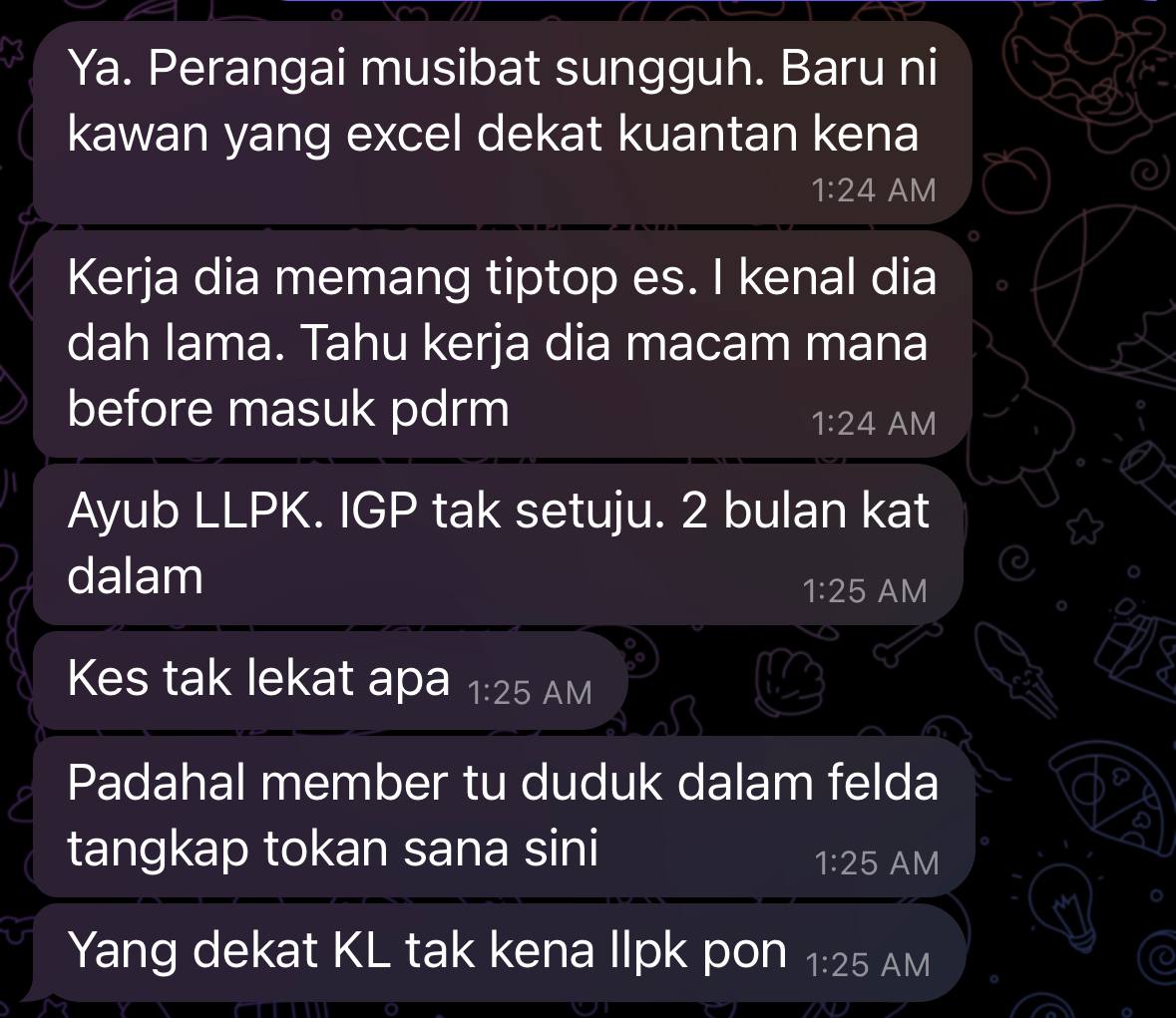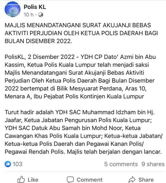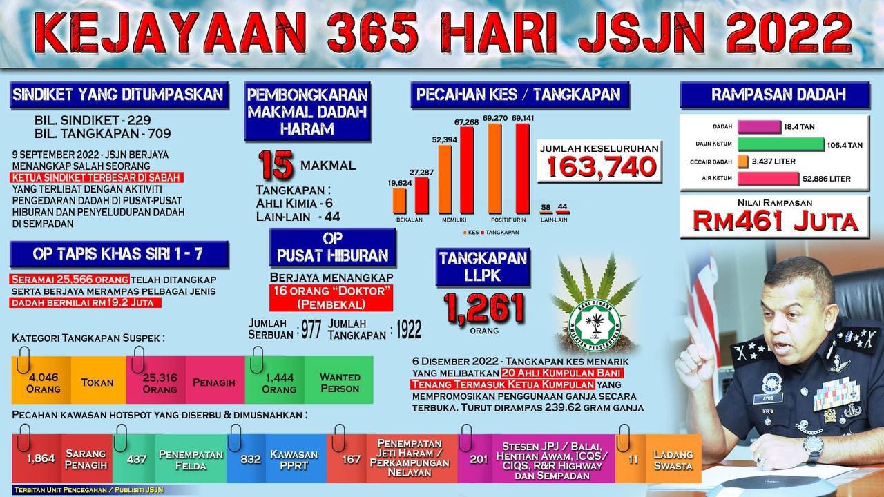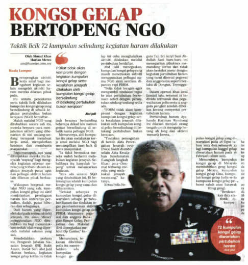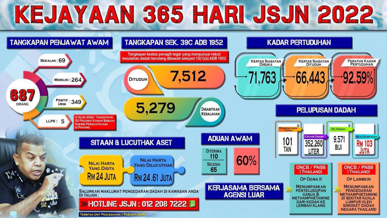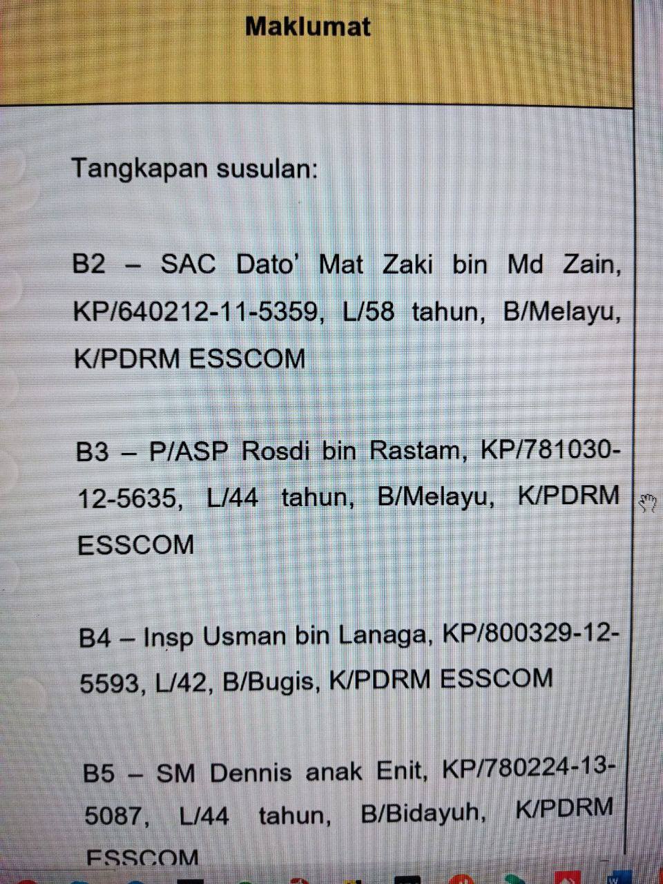 Operasi ini yg melibatkan pasukan JSJ Bukit Aman, JSJ Kont Trg serta JIPS (R/O) B Aman dan Cawangan Khas B Aman telah berjaya menahan (7) orang awam, (2) Pegawai Kanan Polis dan (12) APR atas penglibatan dalam aktiviti Pertubuhan haram.