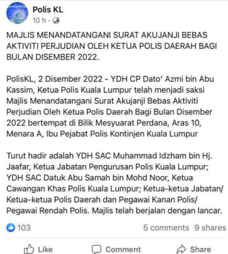 *OP SELENDANG - TANGKAPAN (7) ORANG AWAM, (2) PEGAWAI KANAN POLIS DAN (12) APR DI BAWAH SEKSYEN 43 AKTA PERTUBUHAN 1966*