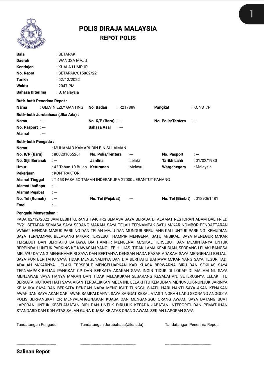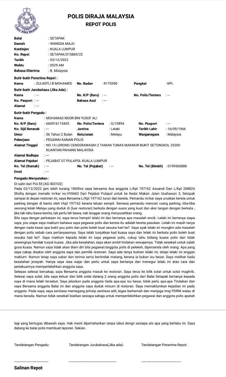 Nama : Kpl. Ismad Aizad Bin Rusli