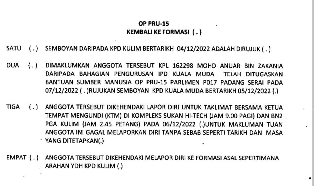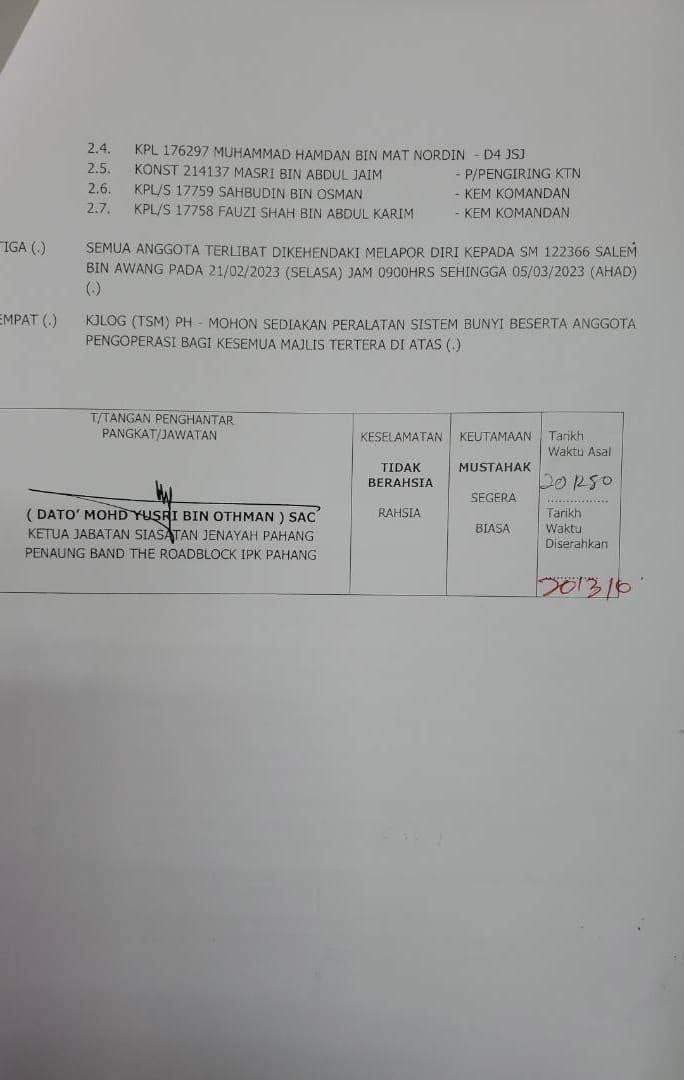 Pada 20/01/2023 hingga 21/01/2023 satu operasi khas (Op Selendang) telah dijalankan ke atas satu pertubuhan haram AYAHANDA HARIMAU KUMBANG (AHK), yang aktif di daerah Dungun yang turut melibatkan ahli2nya dr kalangan pegawai/anggota PDRM IPD Dungun.