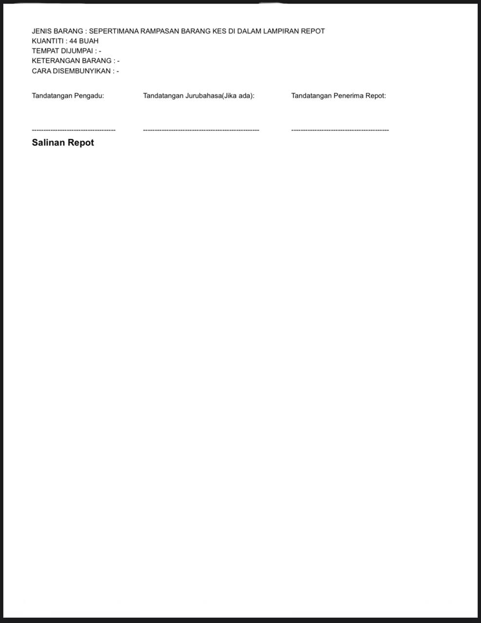 *Senarai Rampasan Termasuk Peralatan Ritual Angkat Sumpah:*