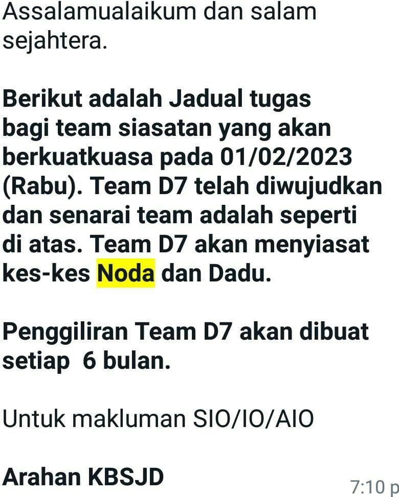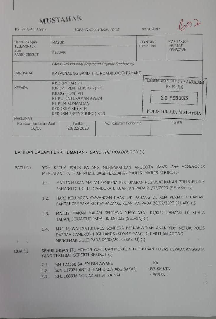 Cawangan : RO JSJK IPD Kuala Terengganu