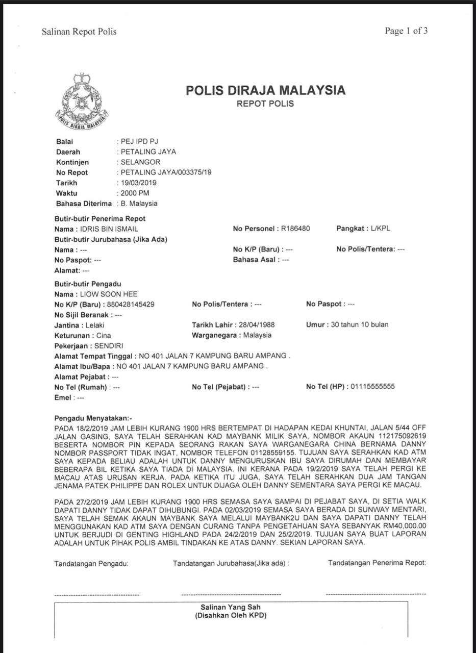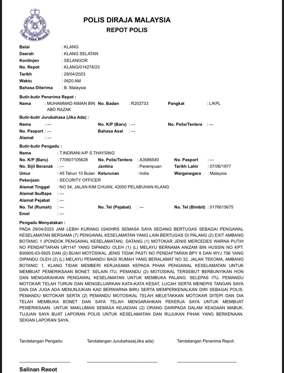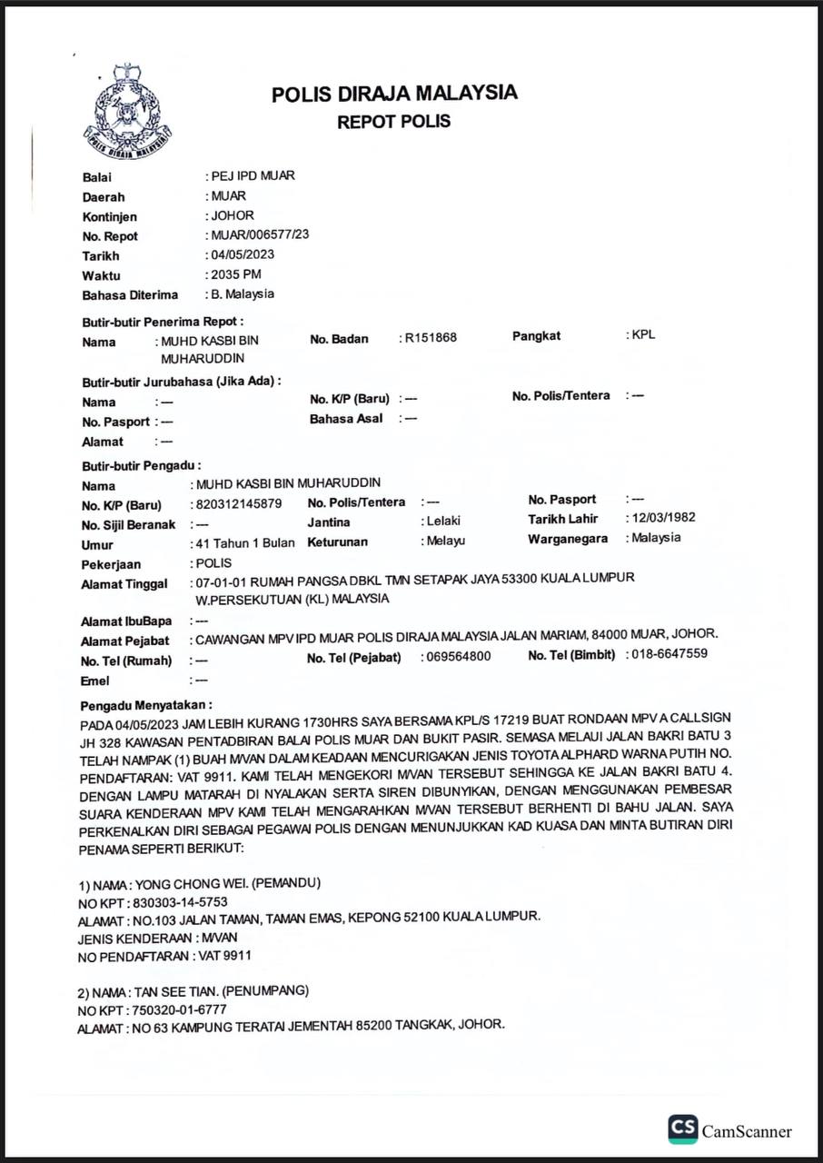 *No.Repot* :Petaling Jaya 2921/23