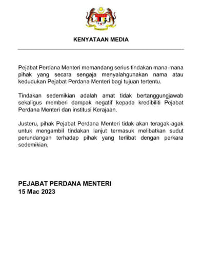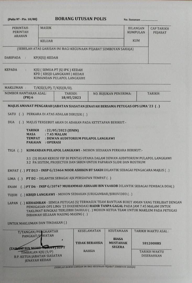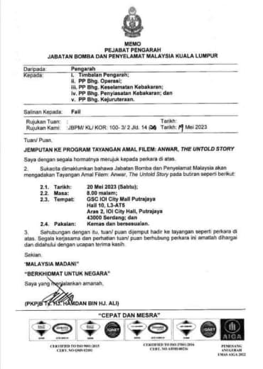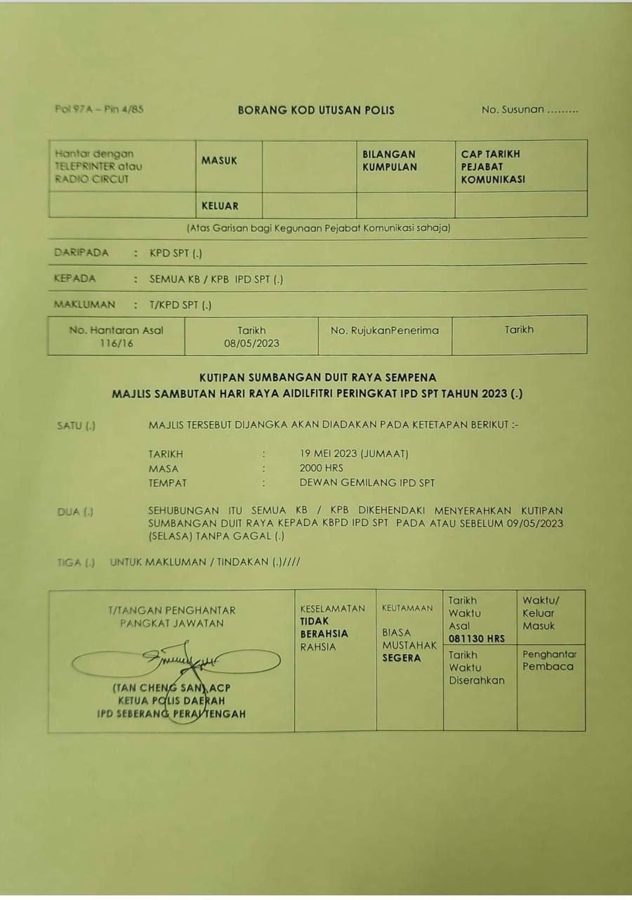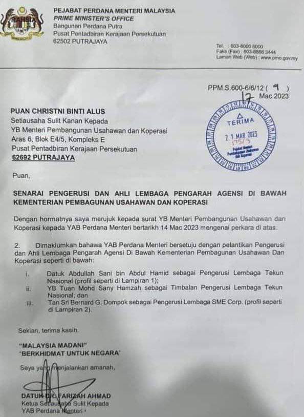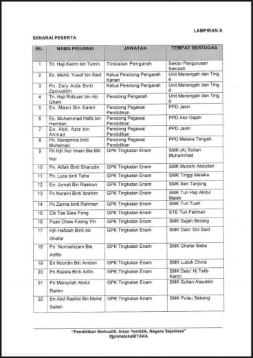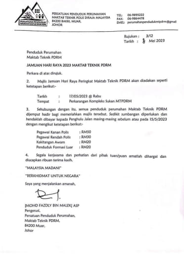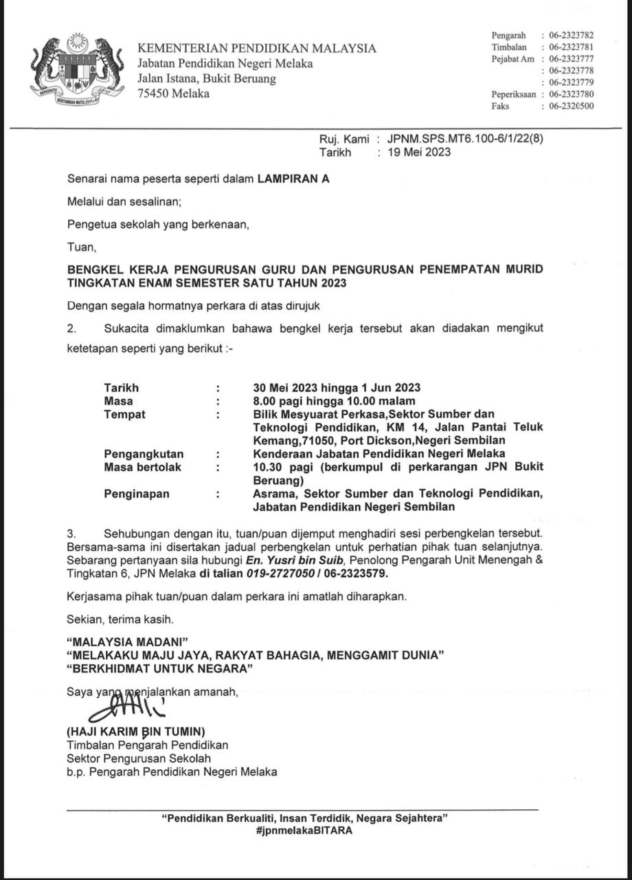 *Untuk makluman YDH Dato’ Sri/Dato’/Datuk/Tuan/Puan*