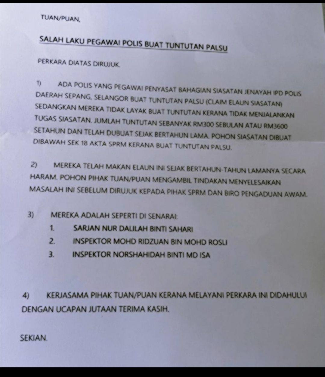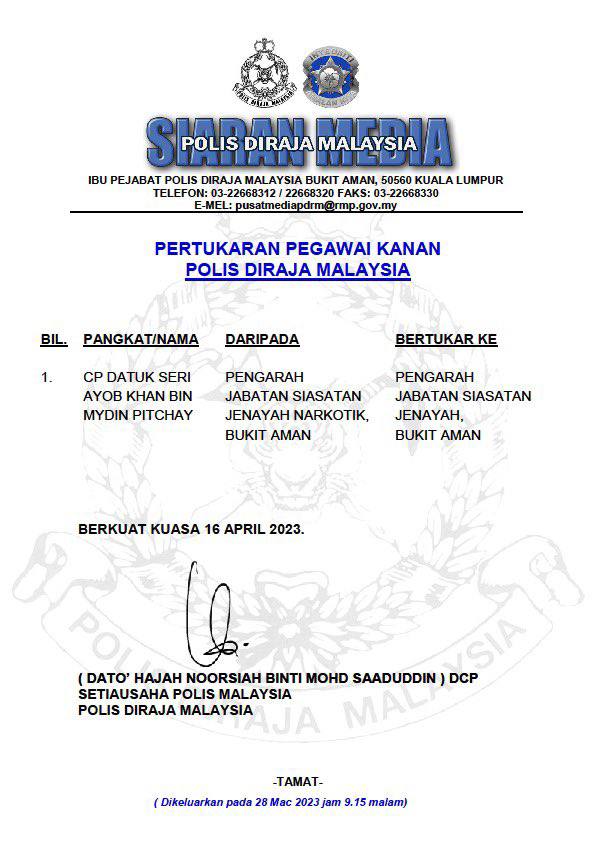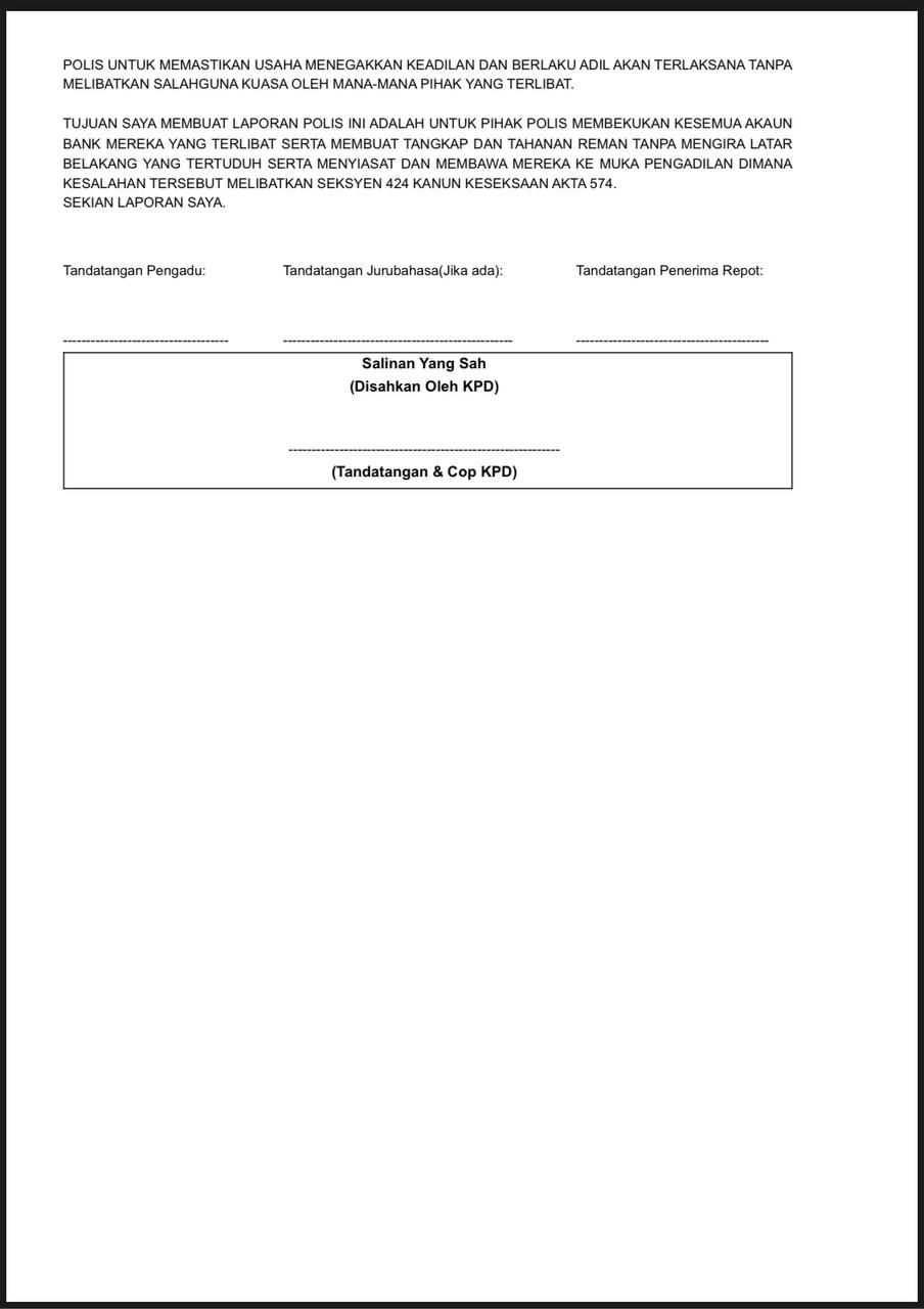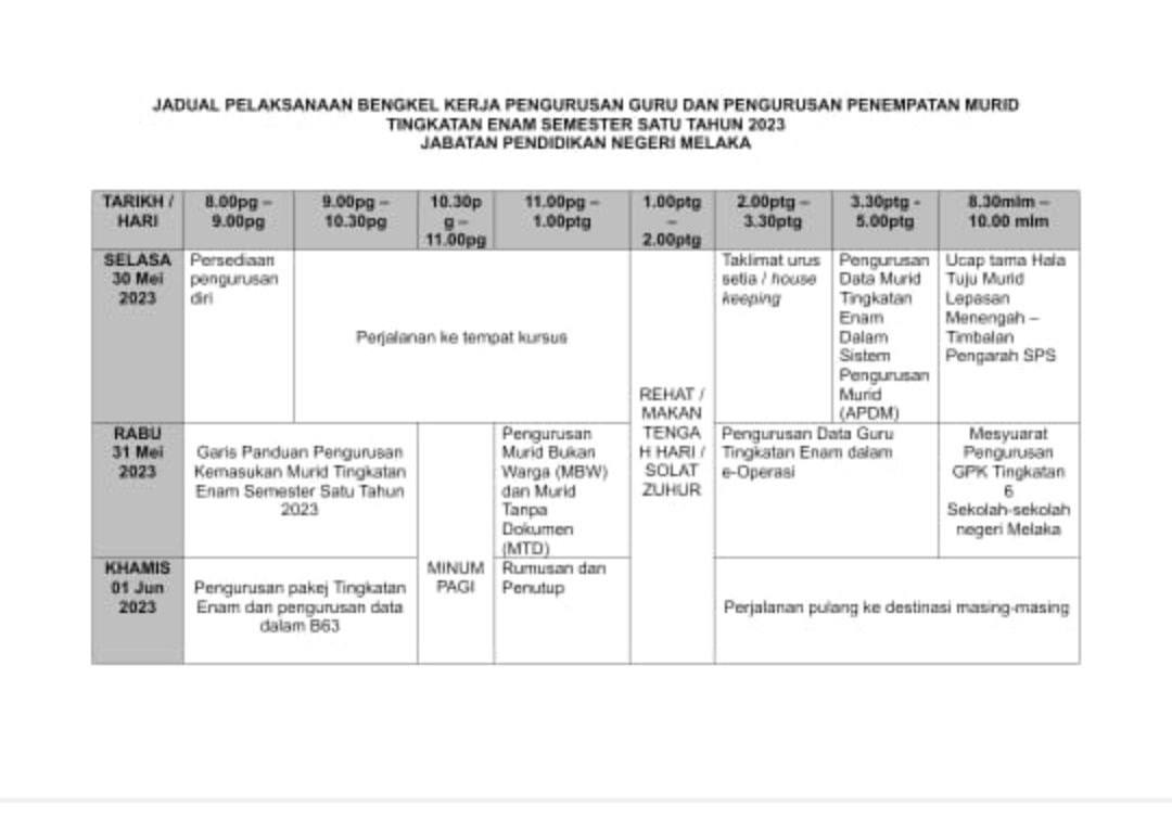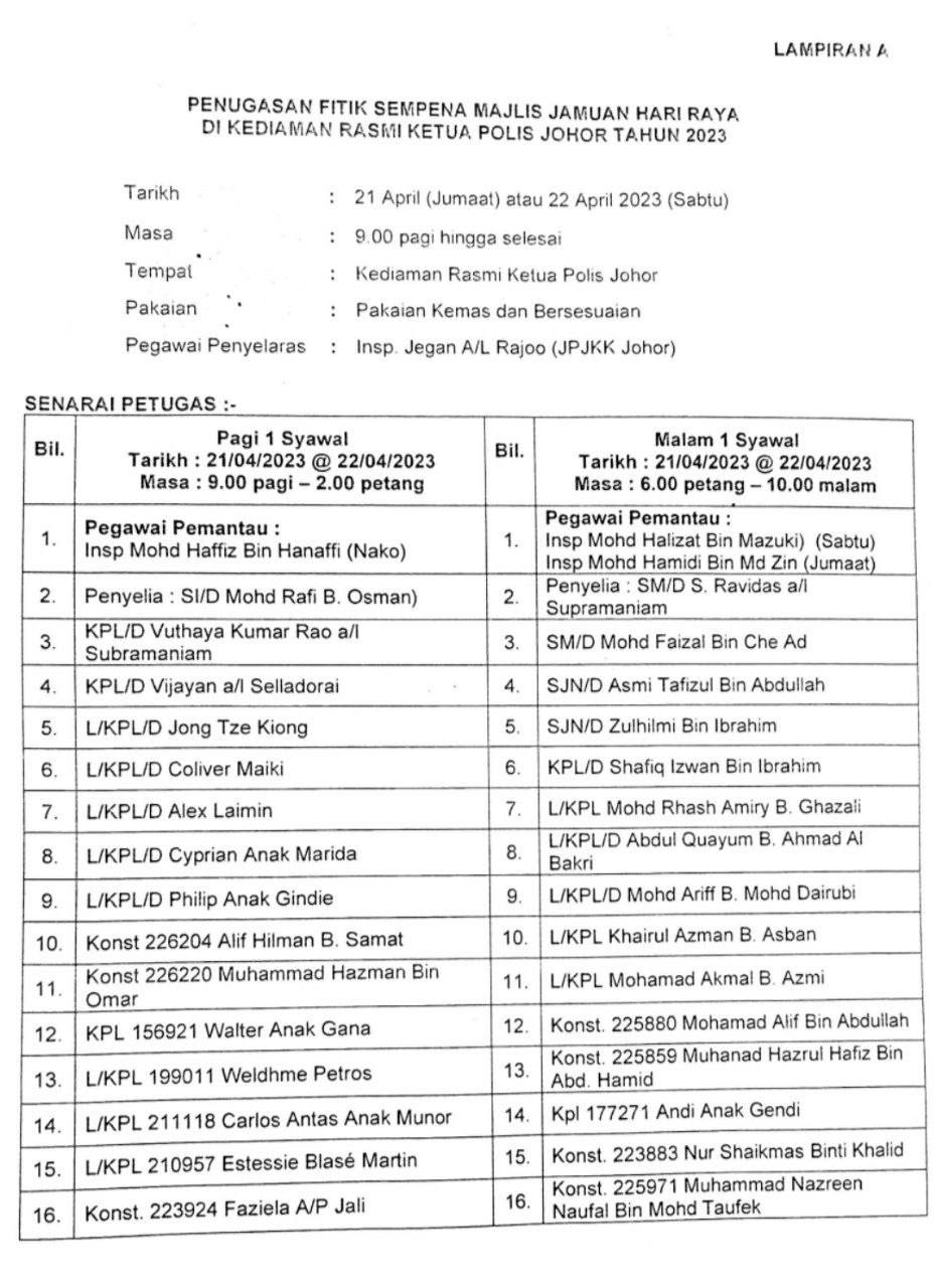 *Untuk makluman YDH Dato’ Sri/Dato’/Datuk/Tuan/Puan*