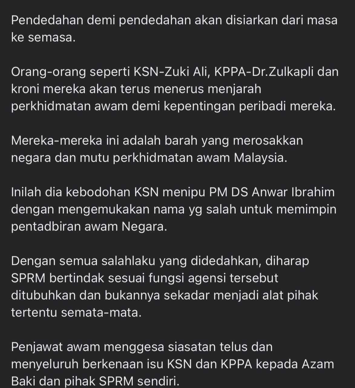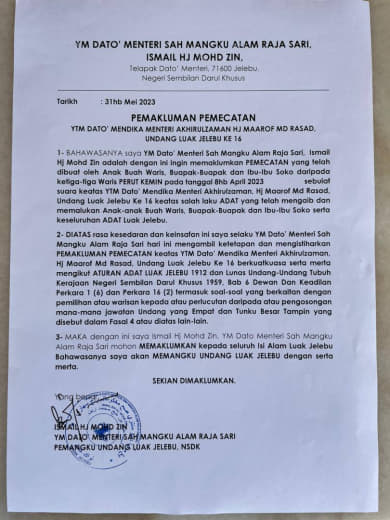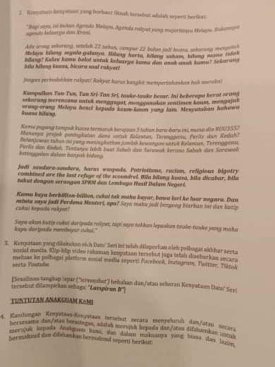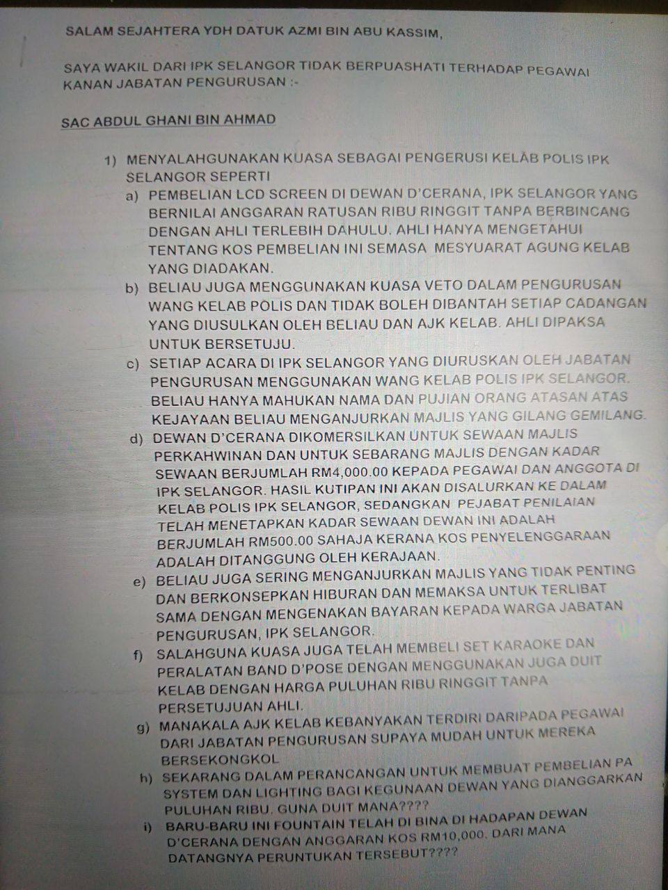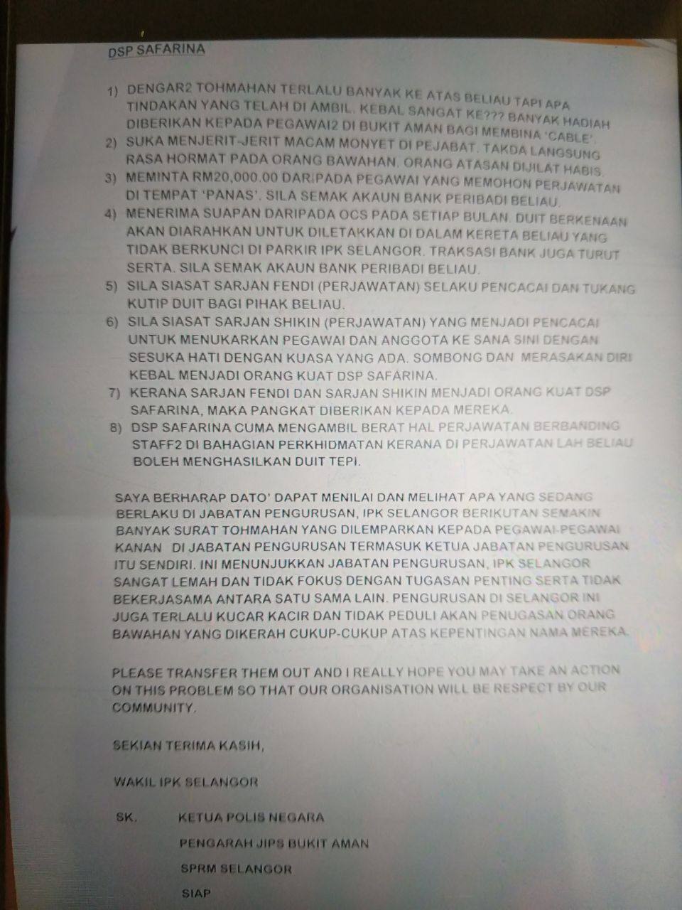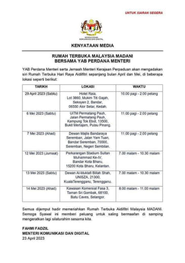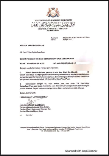 *Untuk makluman YDH Dato’ Sri/Dato’/Datuk/Tuan/Puan*