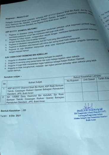 - Status : Selesai (Rujuk Jabatan)