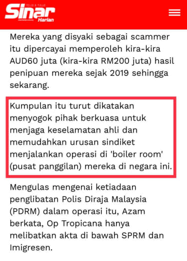 6.2. Percakapan mangsa-mangsa dikalangan warganegara China yang terlibat akan dirakam.