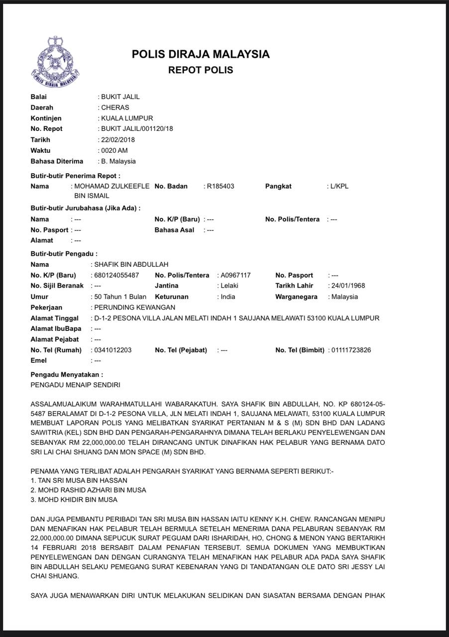 No. Repot: Sungai Besi/ 1409/23