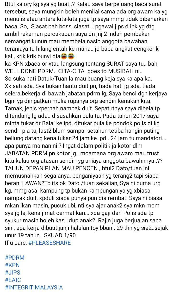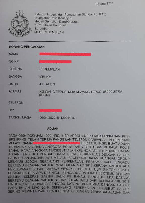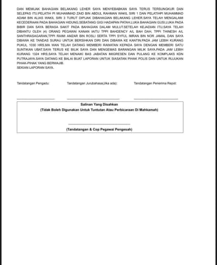 6.1. Pengadu telah dihubungi untuk dirakam percakapan bagi mendapatkan keterangan yang lebih jelas. Keterangan awal ini diperolehi melalui perbualan telefon dan kini pengadu dalam perjalanan ke IPD Serdang.