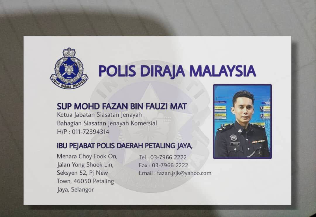 Alamat: 47-1-8 Perumahan Polis Desa Tasik, Jln 2A/146 Desa Tasik, Sungai Besi 57000 Kuala Lumpur.